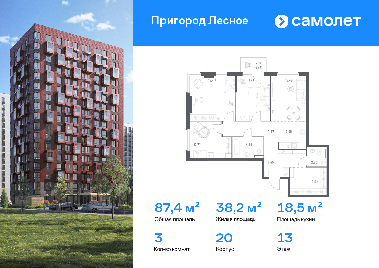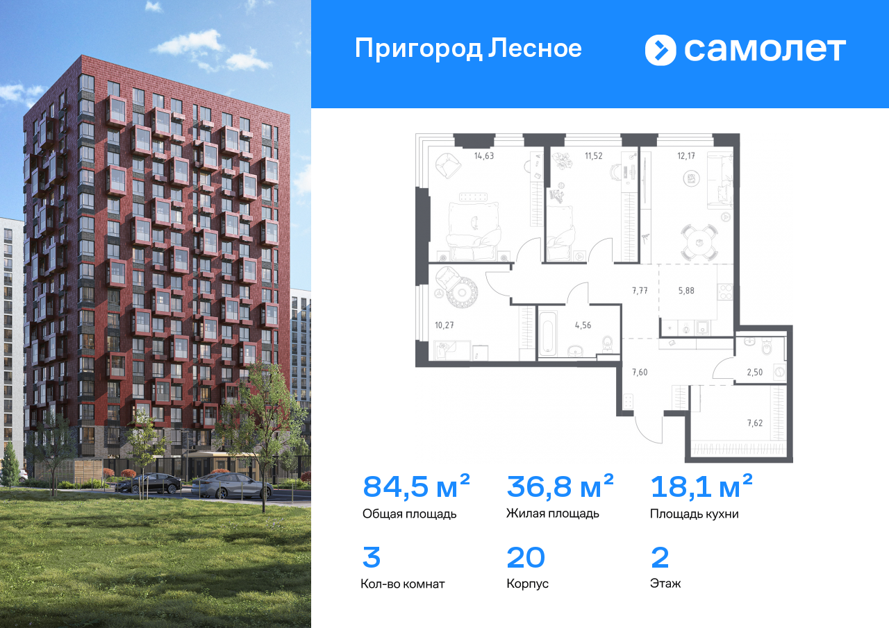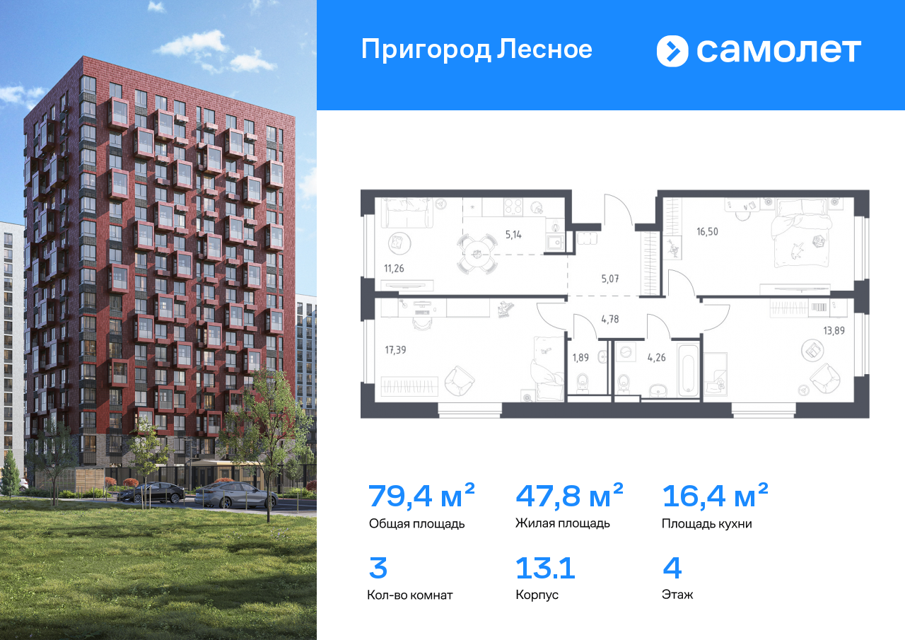 Евро трехкомнатные квартиры в ЖК «Пригород Лесное»