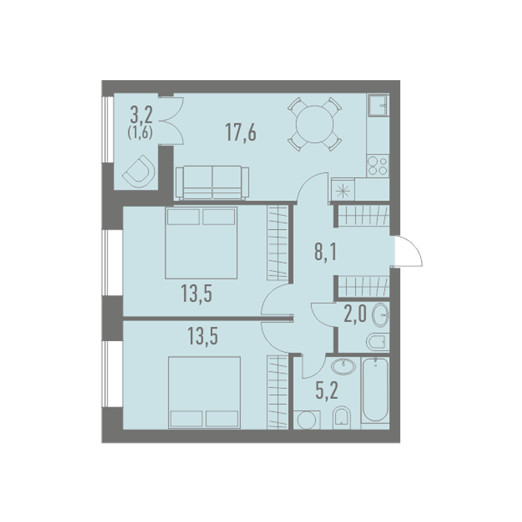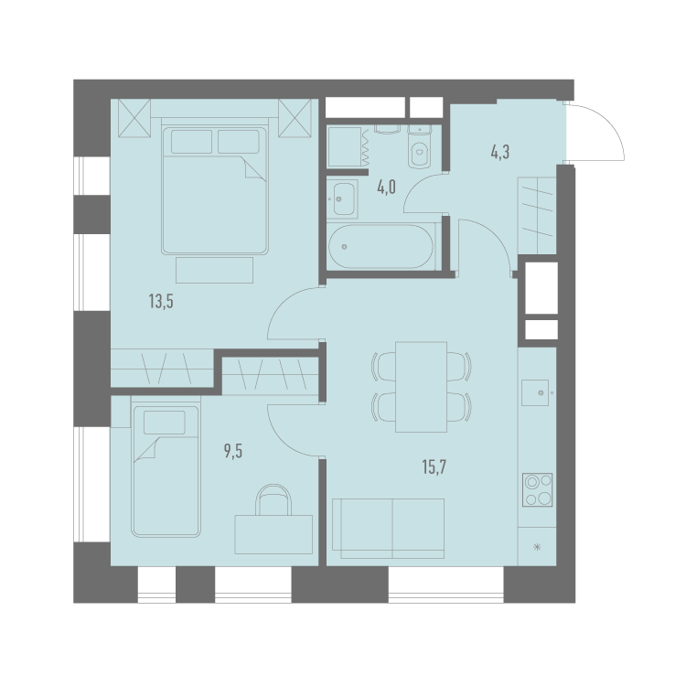 Двухкомнатные квартиры в ЖК «Кварталы 2119» (Кварталы 21/19)