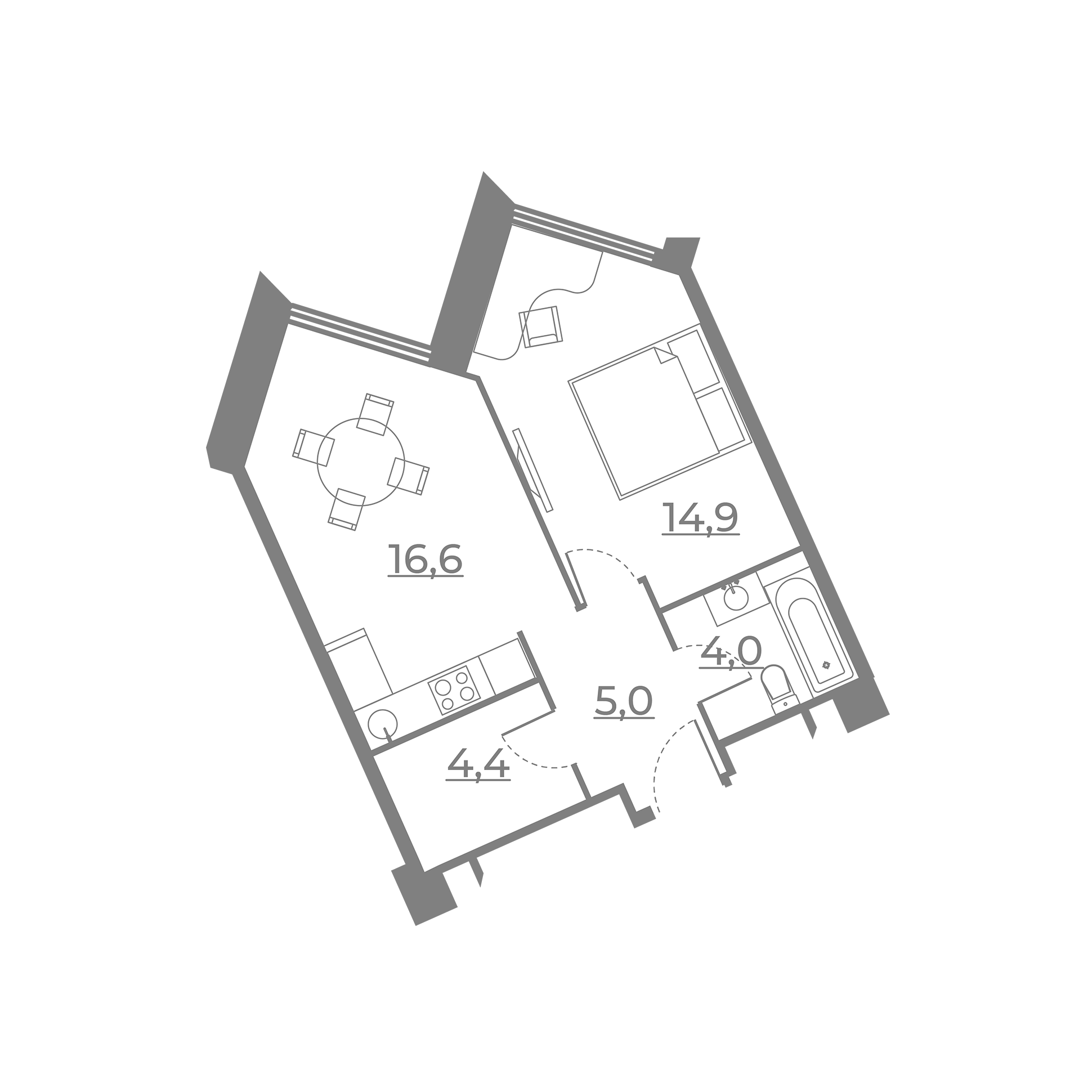 Евро 1-комнатная (43.83м2)