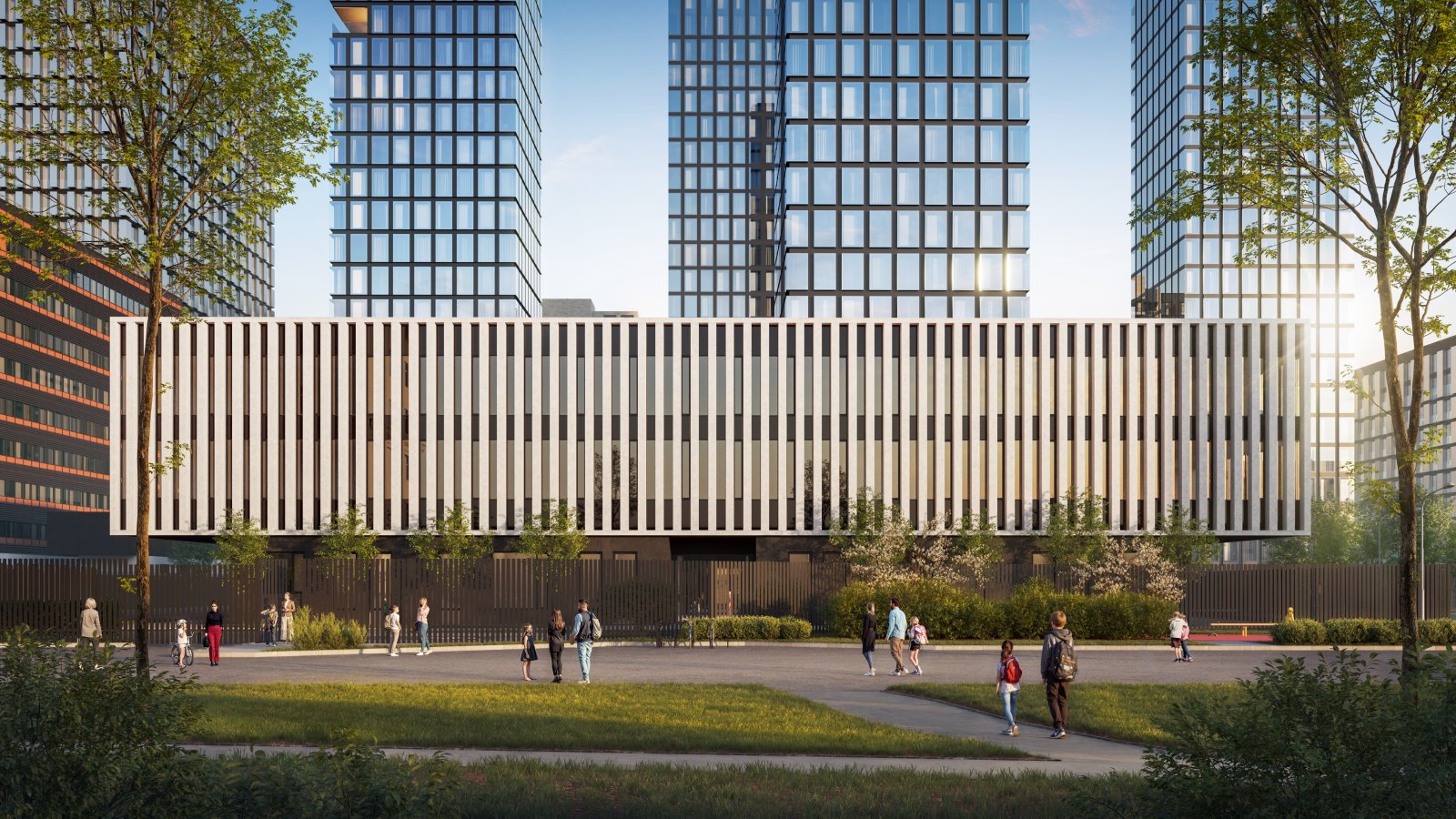 Прямо рядом с кварталом предусмотрены престижная частная школа с детским садом. Её архитектура в 2025 году удостоена золотой награды международной премии Global Future Design Awards.