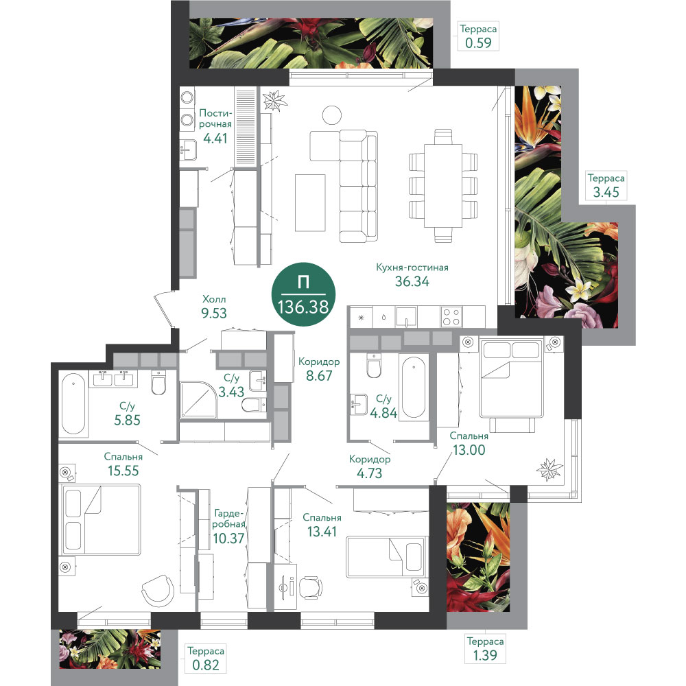 Четырехкомнатные квартиры в ЖК Russian Design District (Рашен Дизайн Дистрикт)