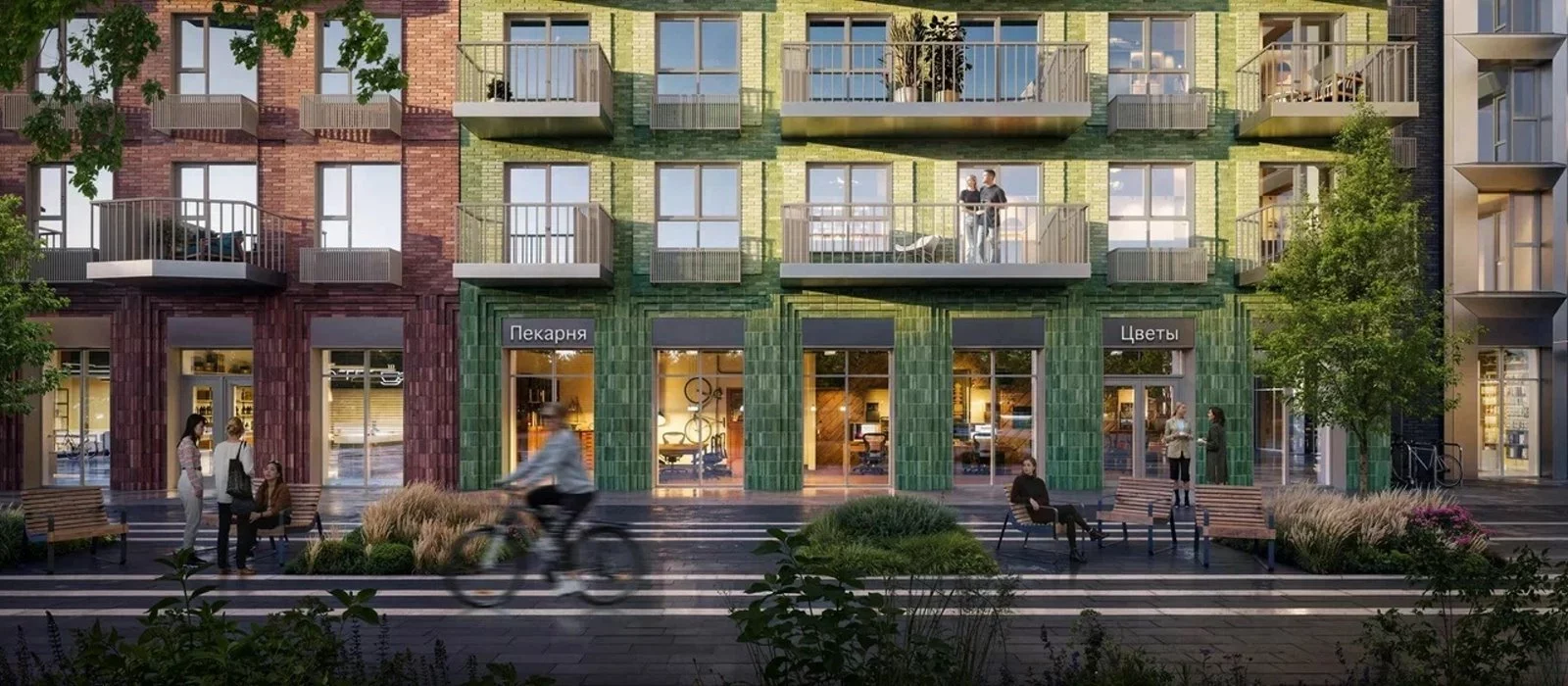 На территории проекта появится детский сад для 300 малышей и образовательный центр с детским садом на 125 мест и школой для 950 учеников. В уютных дворах-парках будут места для отдыха, игровые и спортивные площадки. На первых этажах домов откроются магазины, кафе и другие сервисы. А для владельцев автомобилей предусмотрен двухуровневый подземный паркинг с местами для электрокаров.