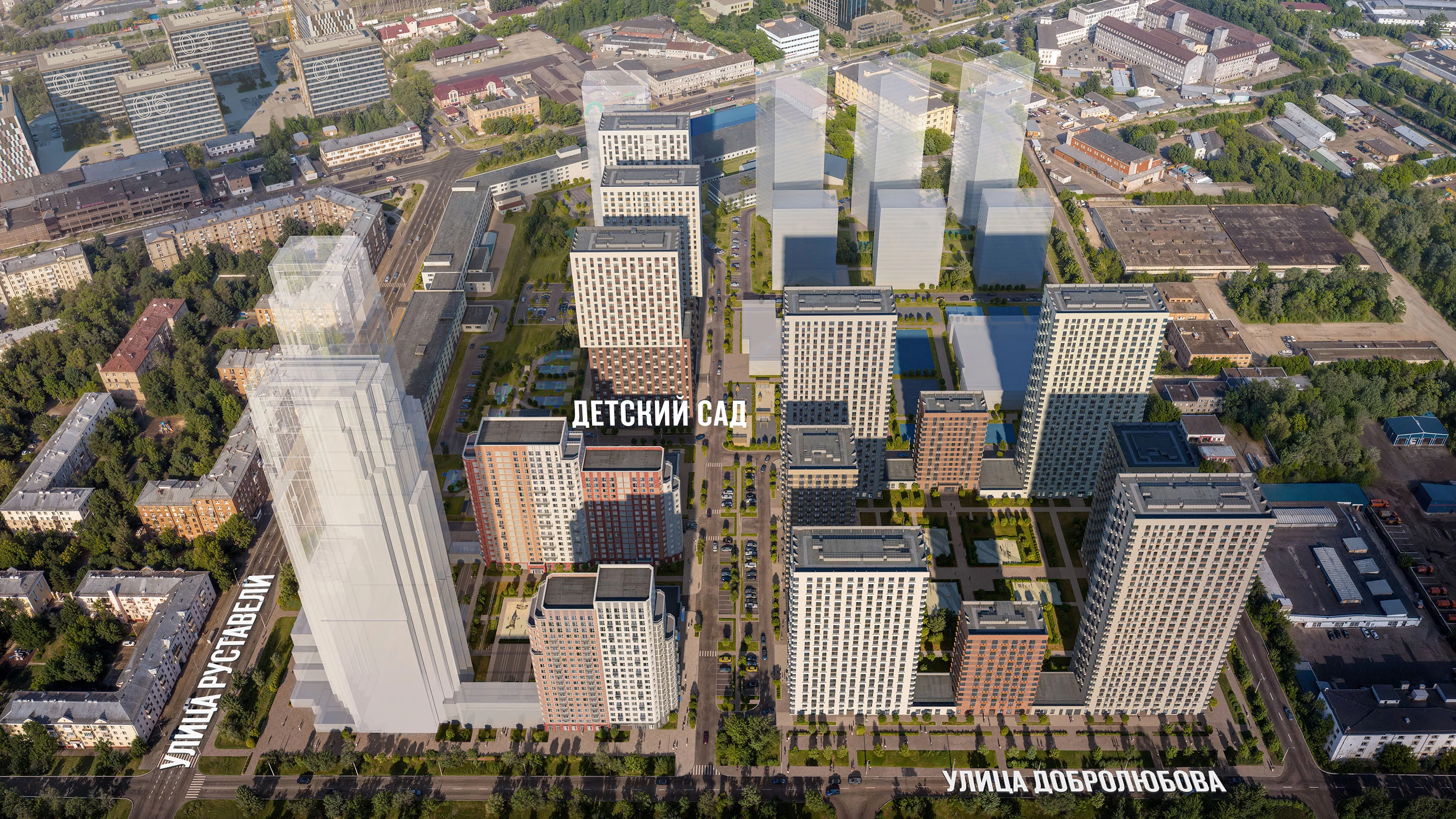 На территории проекта появится детский сад для 300 малышей и образовательный центр с детским садом на 125 мест и школой для 950 учеников. В уютных дворах-парках будут места для отдыха, игровые и спортивные площадки. На первых этажах домов откроются магазины, кафе и другие сервисы. А для владельцев автомобилей предусмотрен двухуровневый подземный паркинг с местами для электрокаров.