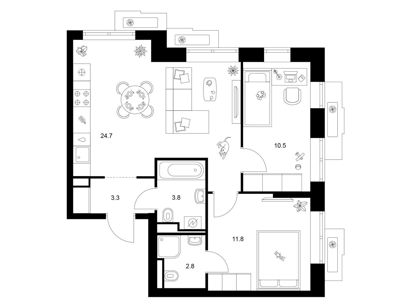 - Цена за м2 368 700 руб