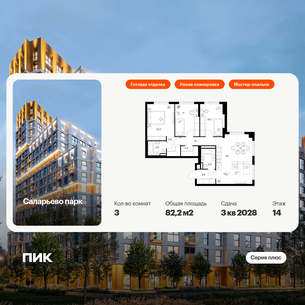 «Саларьево парк» — не просто квартал, а полноценный жилой район, который отличается разноплановой архитектурой. Над концепцией квартала работали несколько ведущих архитектурных бюро, которые стремились добиться разнообразия в фасадных решениях. Ярким примером такого подхода станут корпуса 82 и 83, которые относятся к «Серии плюс».