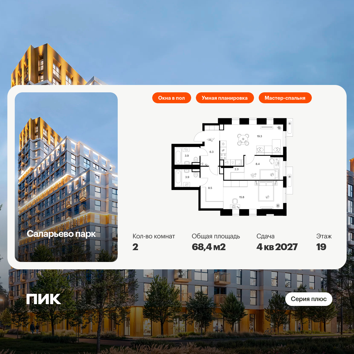 «Саларьево парк» — не просто квартал, а полноценный жилой район, который отличается разноплановой архитектурой. Над концепцией квартала работали несколько ведущих архитектурных бюро, которые стремились добиться разнообразия в фасадных решениях. Ярким примером такого подхода станут корпуса 82 и 83, которые относятся к «Серии плюс».