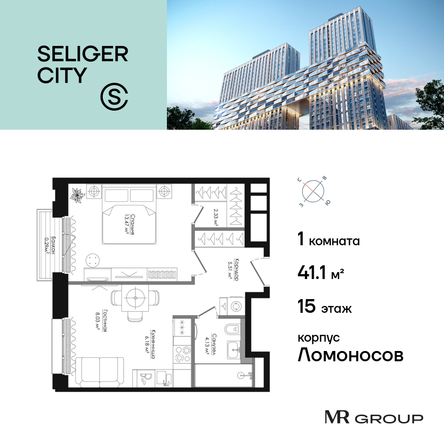 Однокомнатные квартиры в ЖК Селигер Сити