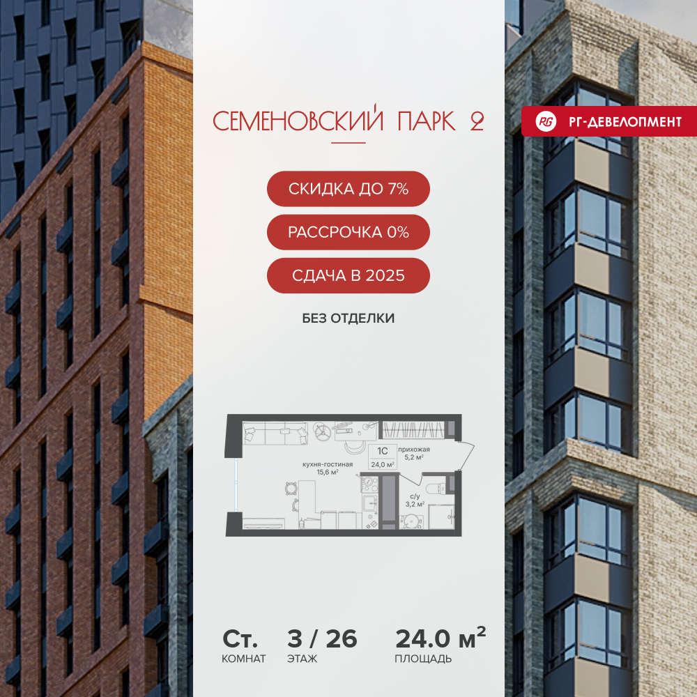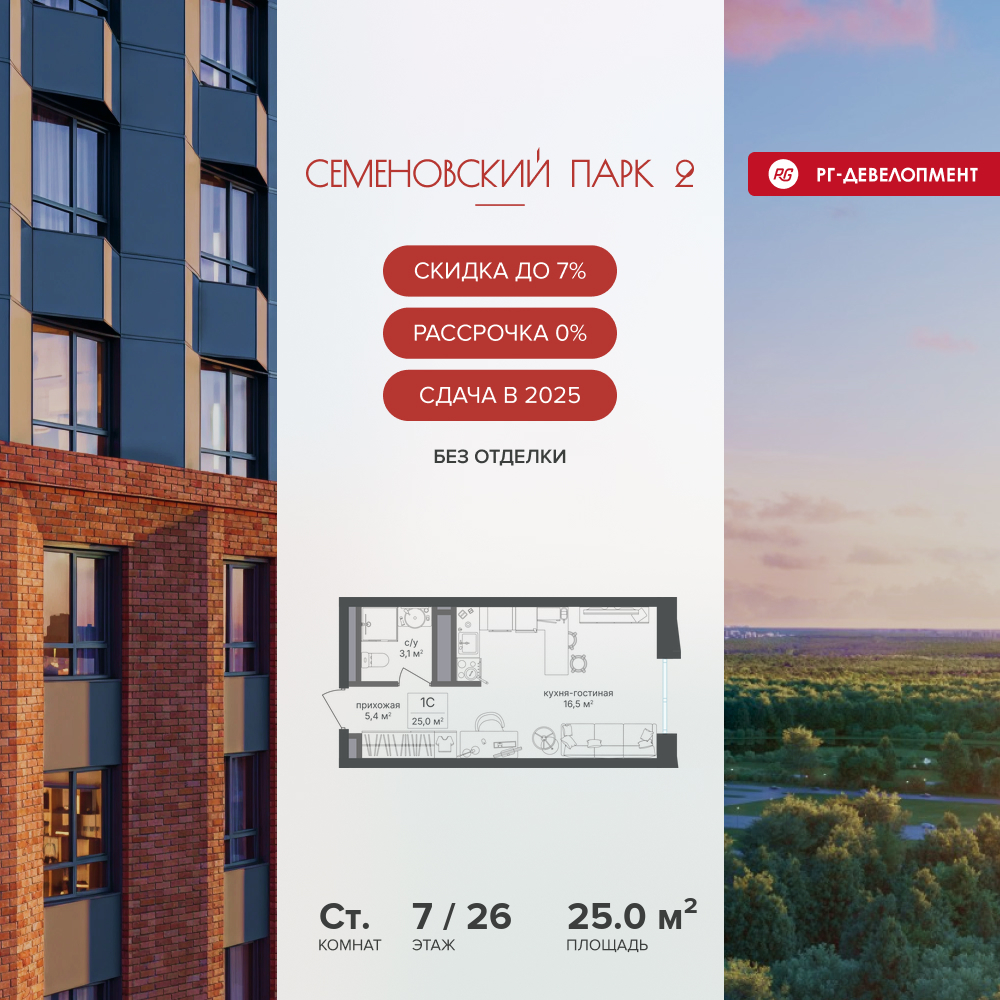 Квартиры-студии в ЖК «Семеновский парк 2»