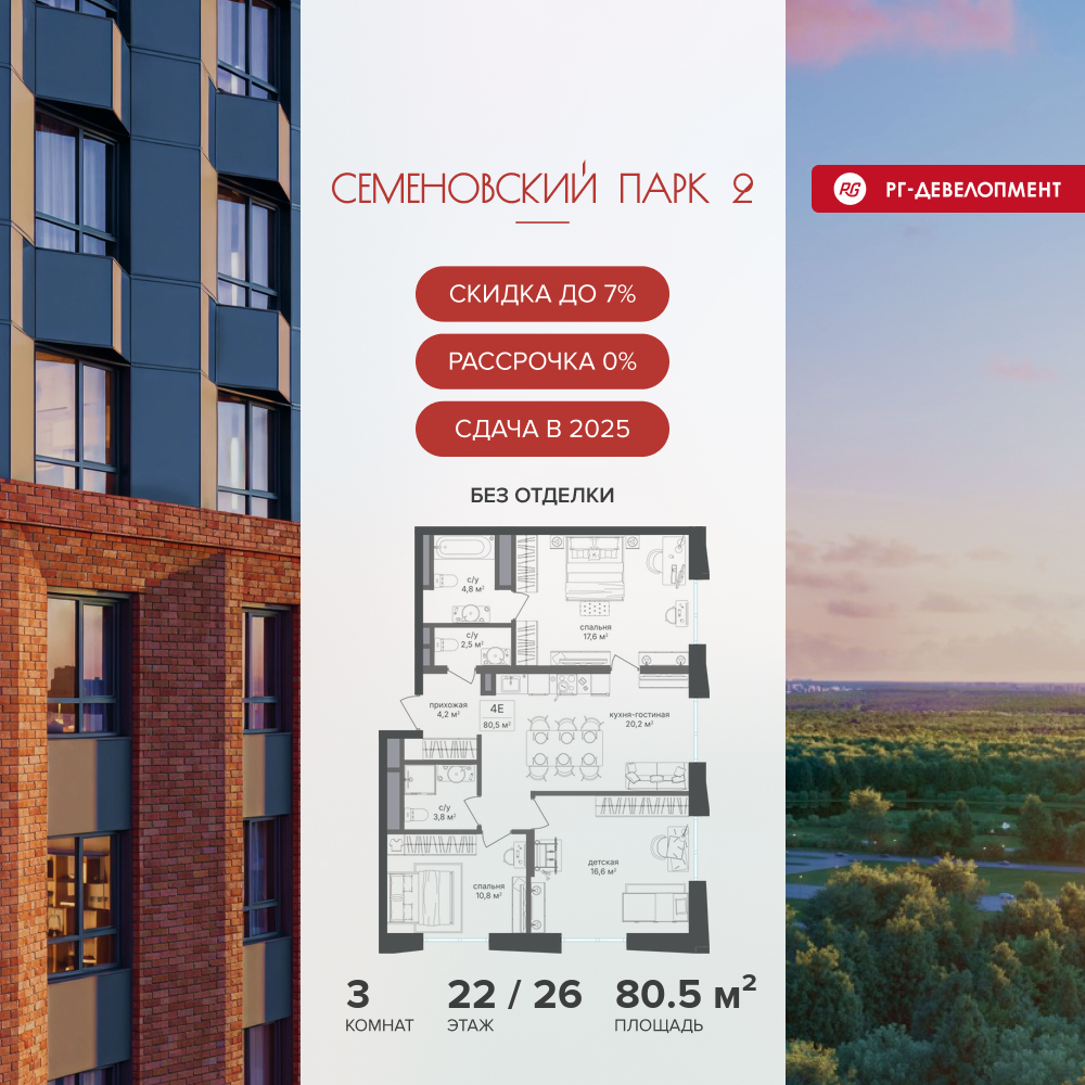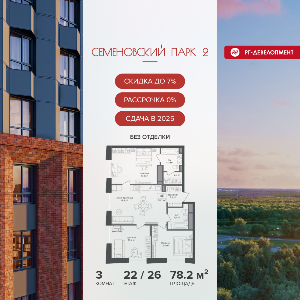 Четырехкомнатные квартиры в ЖК «Семеновский парк 2»