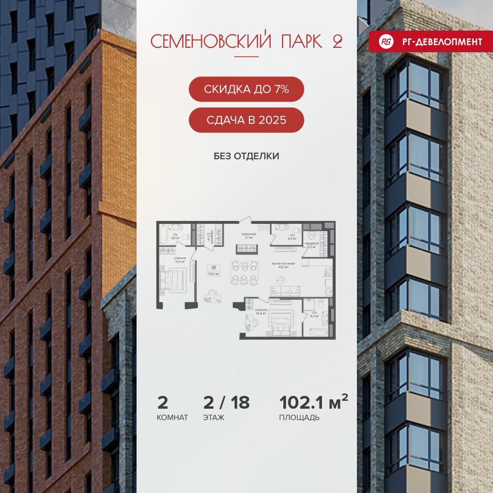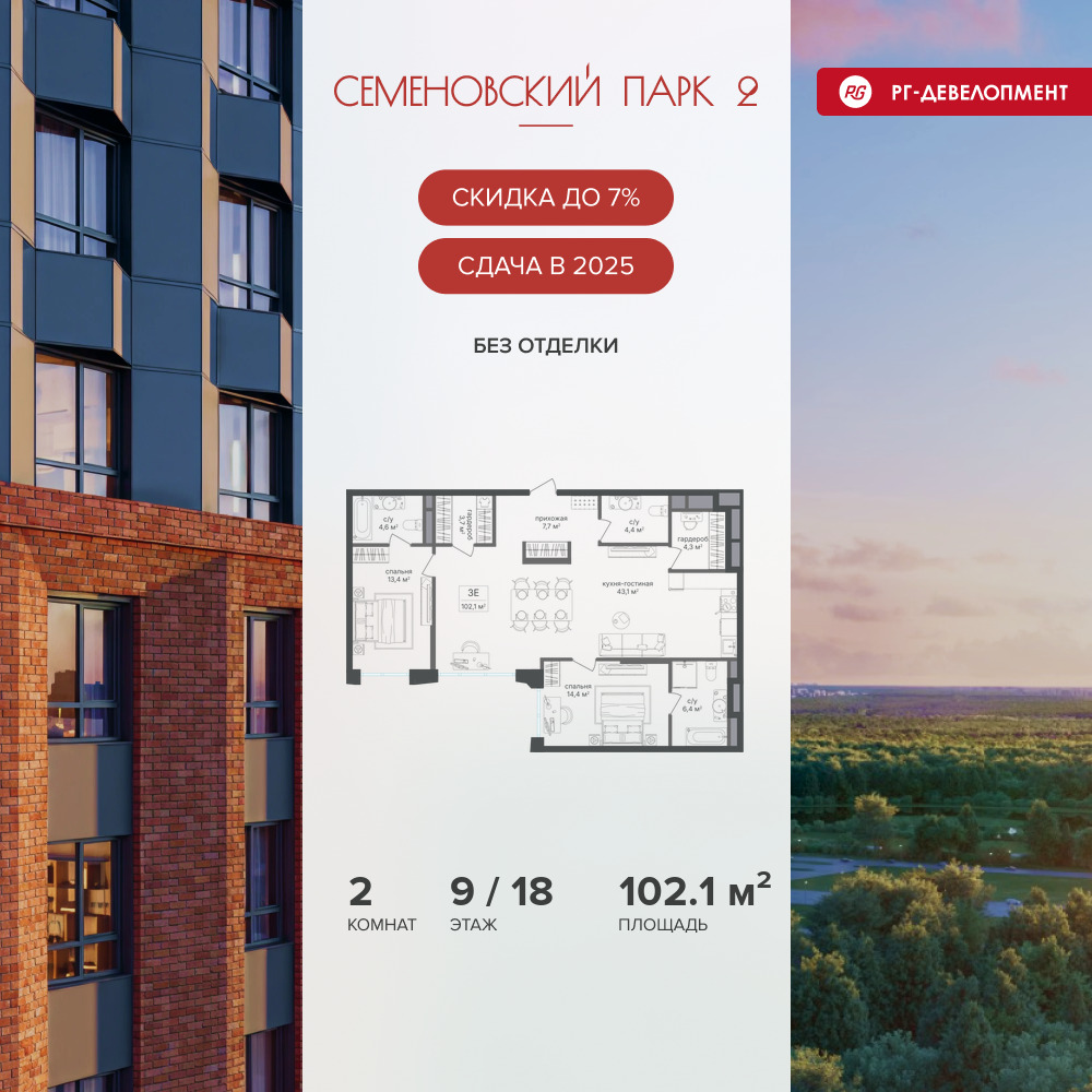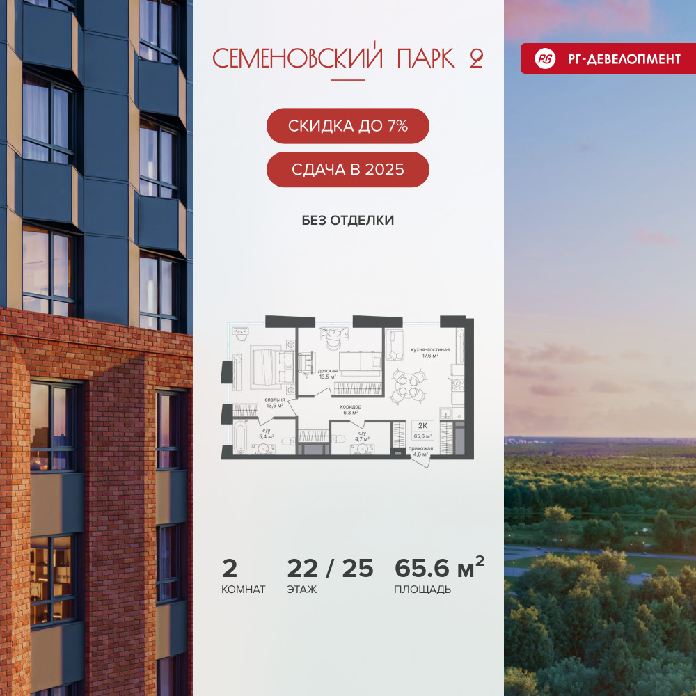 Евро двухкомнатные квартиры в ЖК «Семеновский парк 2»