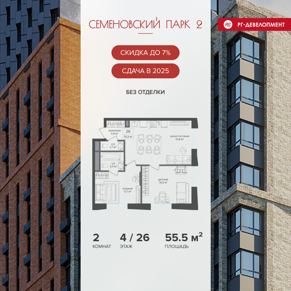 ЖК «Семеновский парк 2» - современный жилищный комплекс, который будет построен к 3 кварталу 2025 г. и относится к комфорт-классу. Имеет удобное расположение: район Соколинная Гора города Москва, Восточный административный округ, расстояние до ближайшего метро Соколинная Гора - 16 минут пешком и 4 - на автомобиле. Также рядом находятся станции: Семёновская.