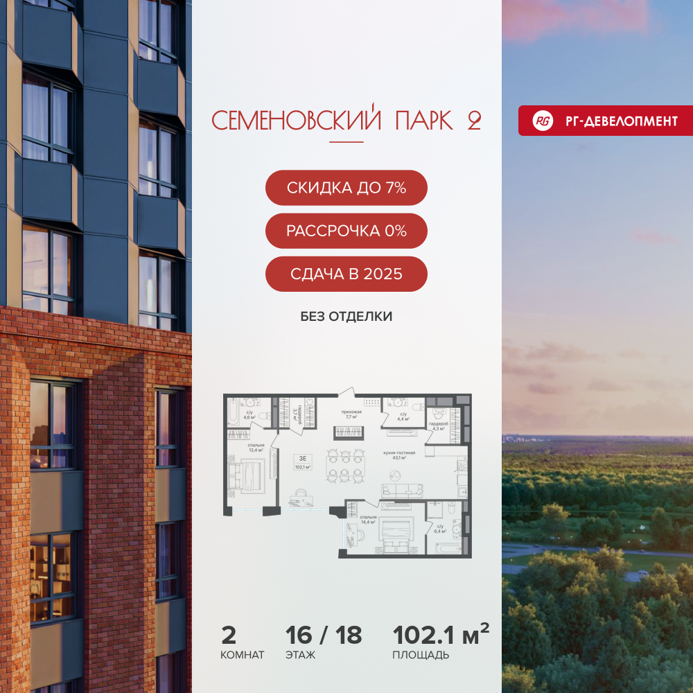 Евро трехкомнатные квартиры в ЖК «Семеновский парк 2»