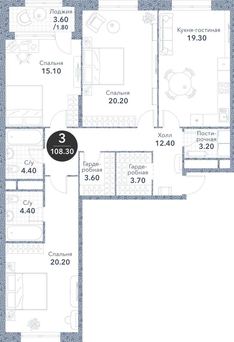 Трехкомнатные квартиры в ЖК «Серебряный фонтан»
