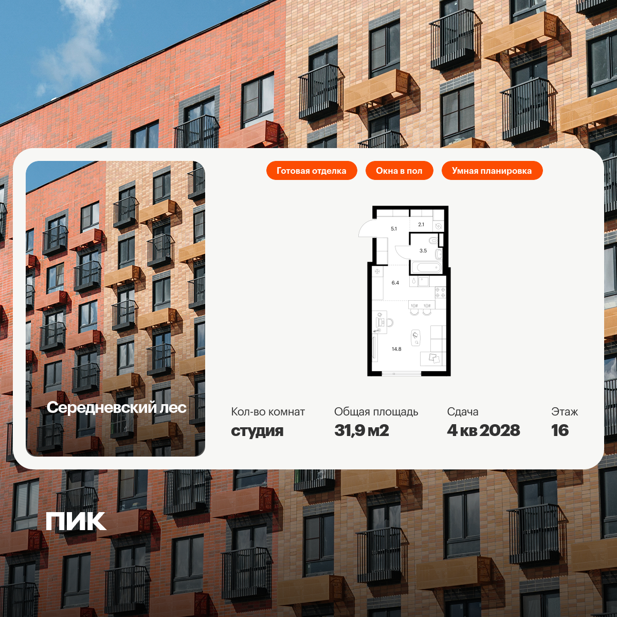 Квартиры-студии в Середневский лес