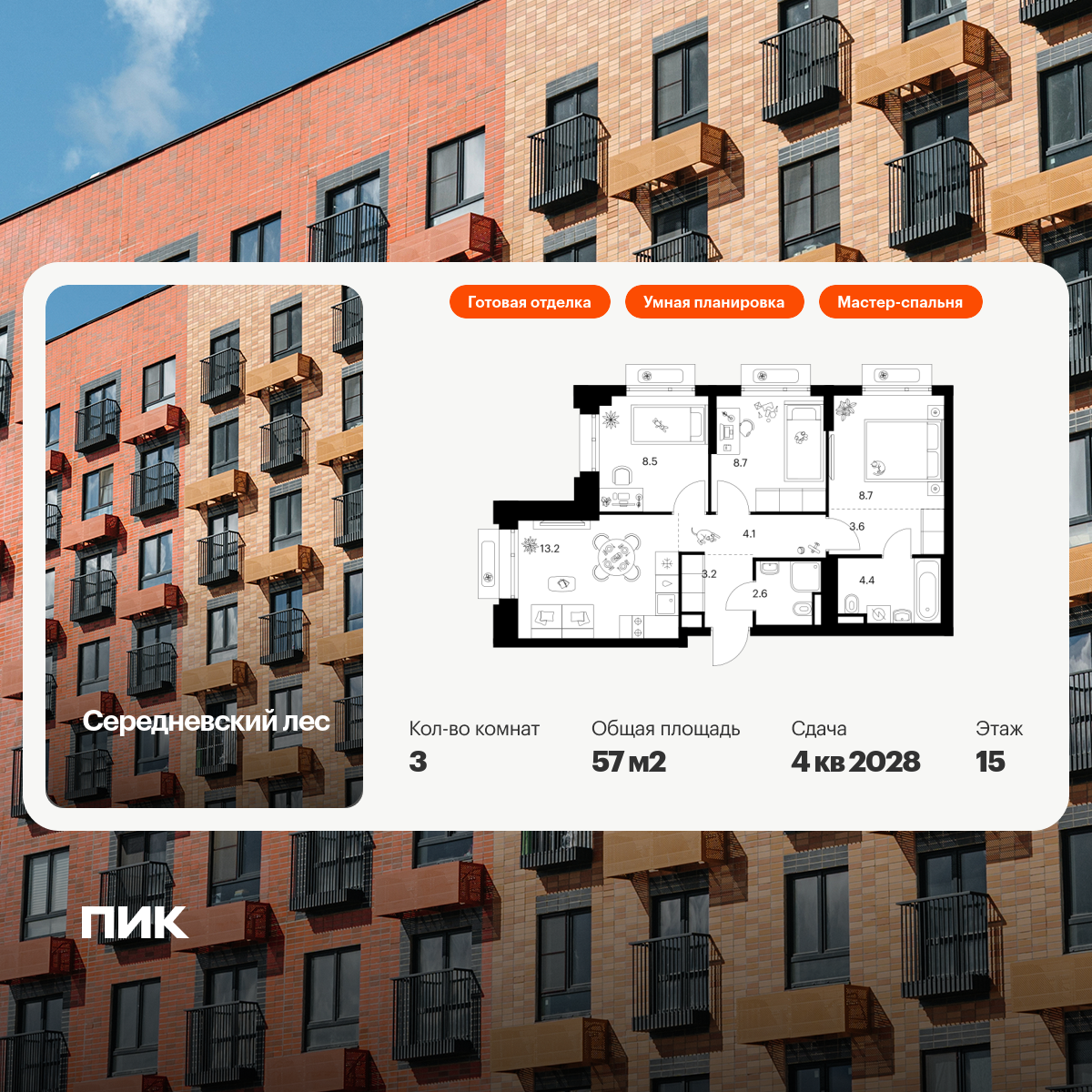 Трехкомнатные квартиры в Середневский лес