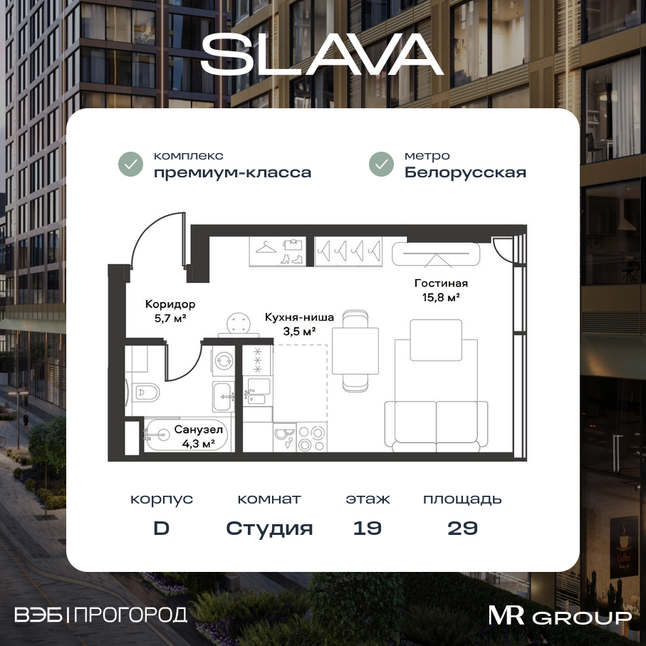 Многофункциональный комплекс SLAVA - знаковый проект премиум-класса в центре Москвы - расположен в 5 минутах пешком от станции м Белорусская. Единое концептуальное пространство объединит жилой квартал, деловой центр, стрит - ретейл и зоны для прогулок. В новом городском квартале будет сконцентрировано все необходимое для жизни, работы и отдыха.