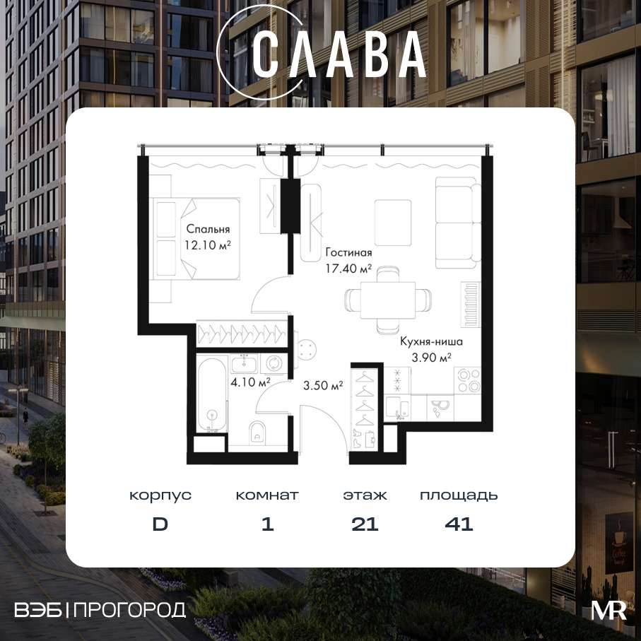 Однокомнатные квартиры в ЖК Slava (Слава)