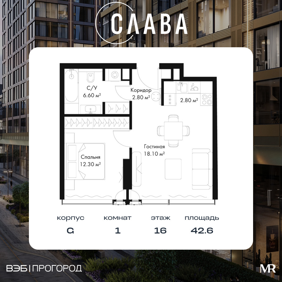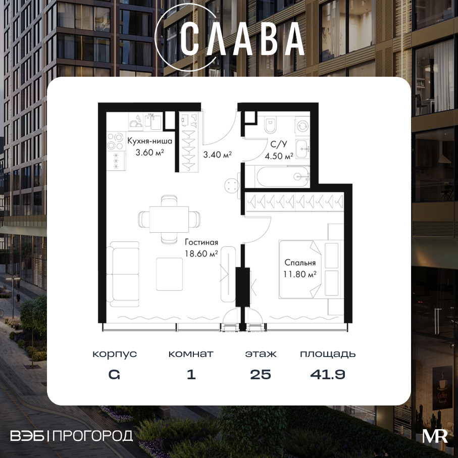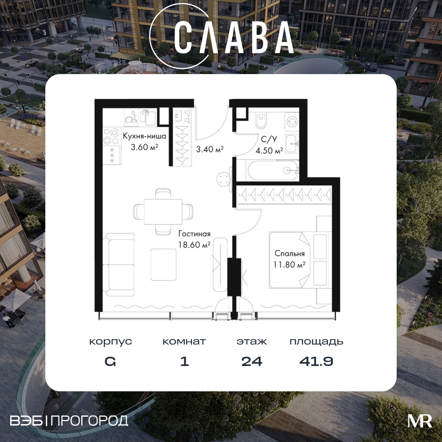 Однокомнатные квартиры в ЖК Slava (Слава)
