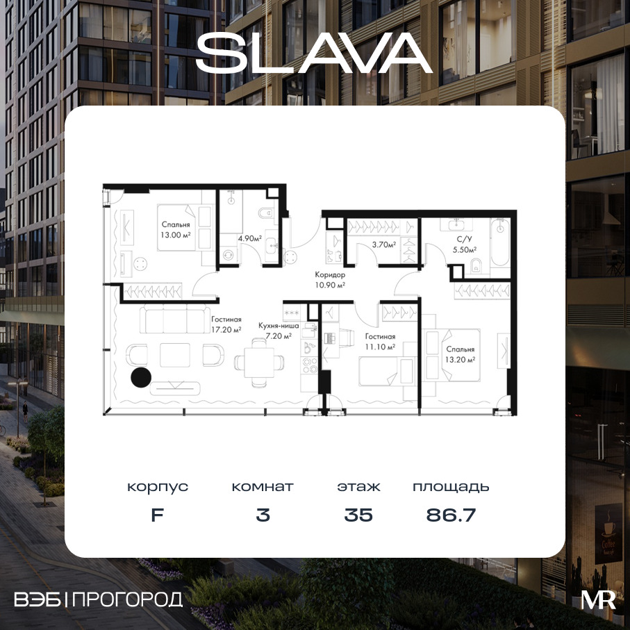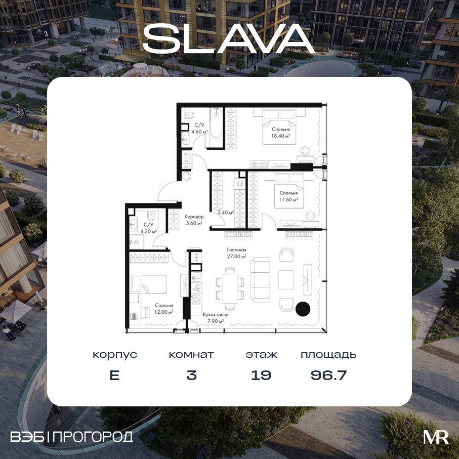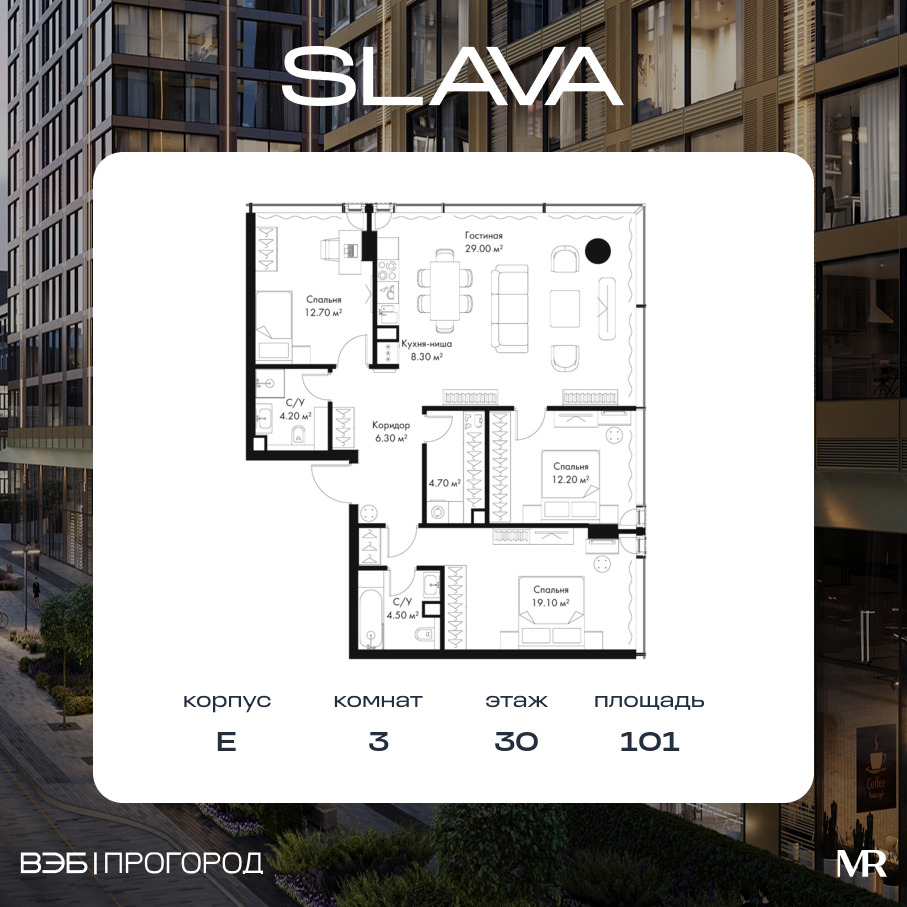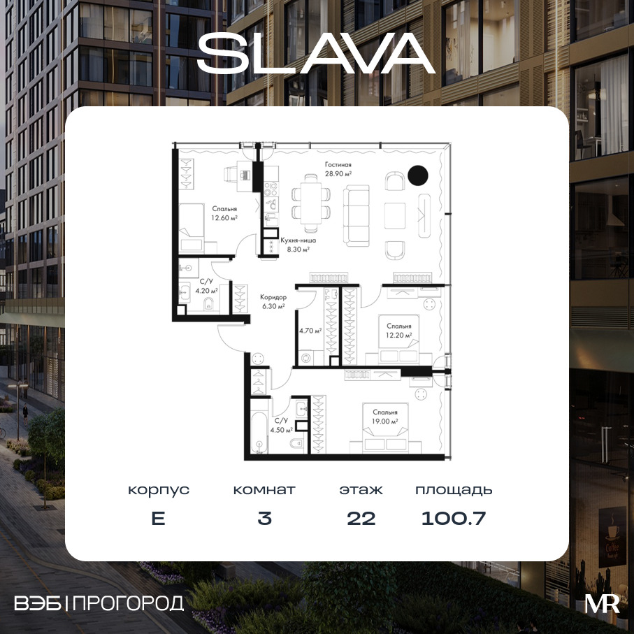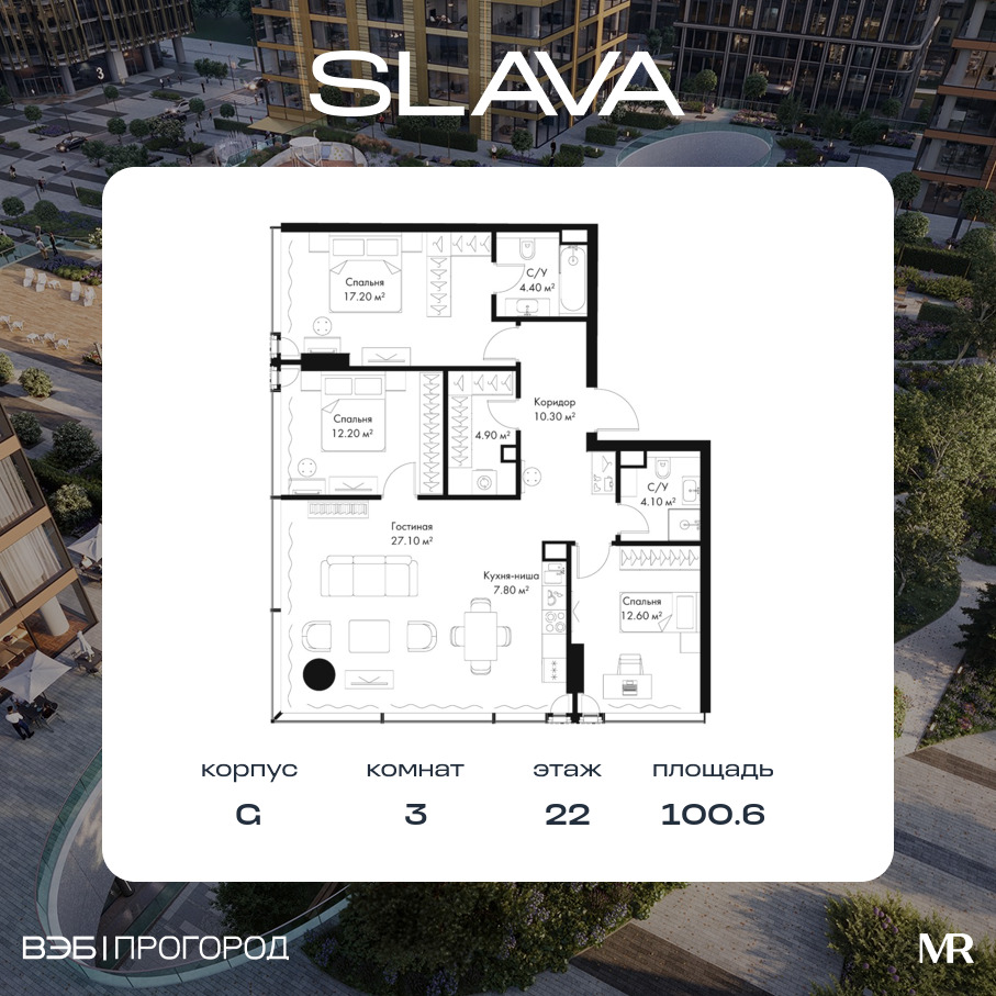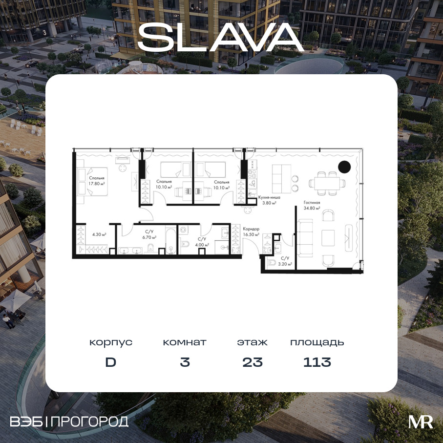 Трехкомнатные квартиры в ЖК Slava (Слава)