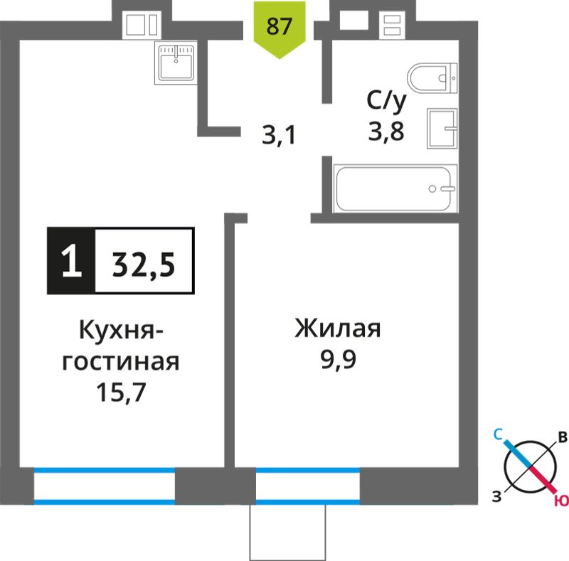 Однокомнатные квартиры в ЖК Смарт Квартал Лесная Отрада