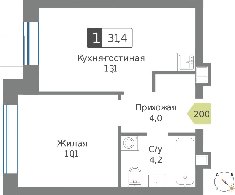 Однокомнатные квартиры в ЖК Смарт Квартал Лесная Отрада