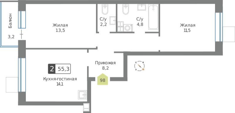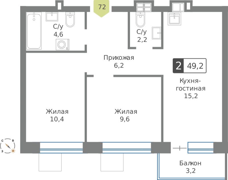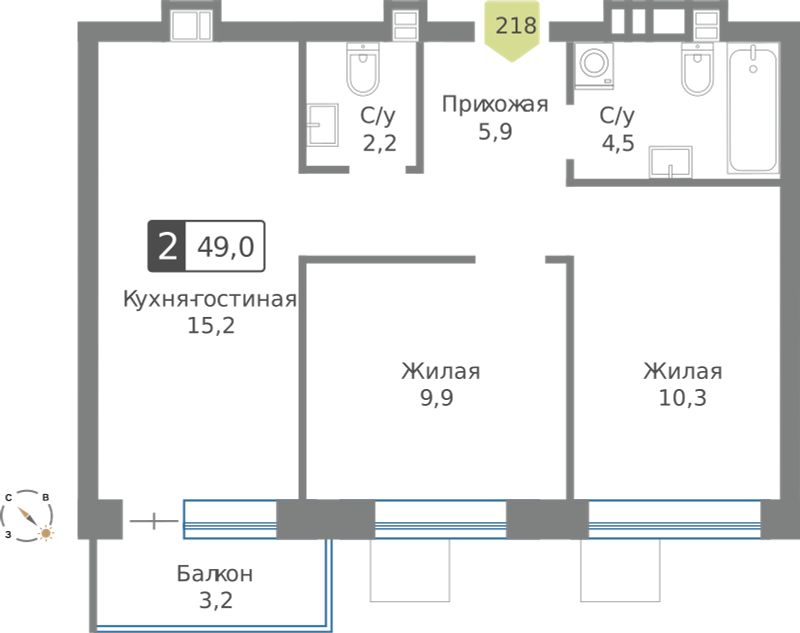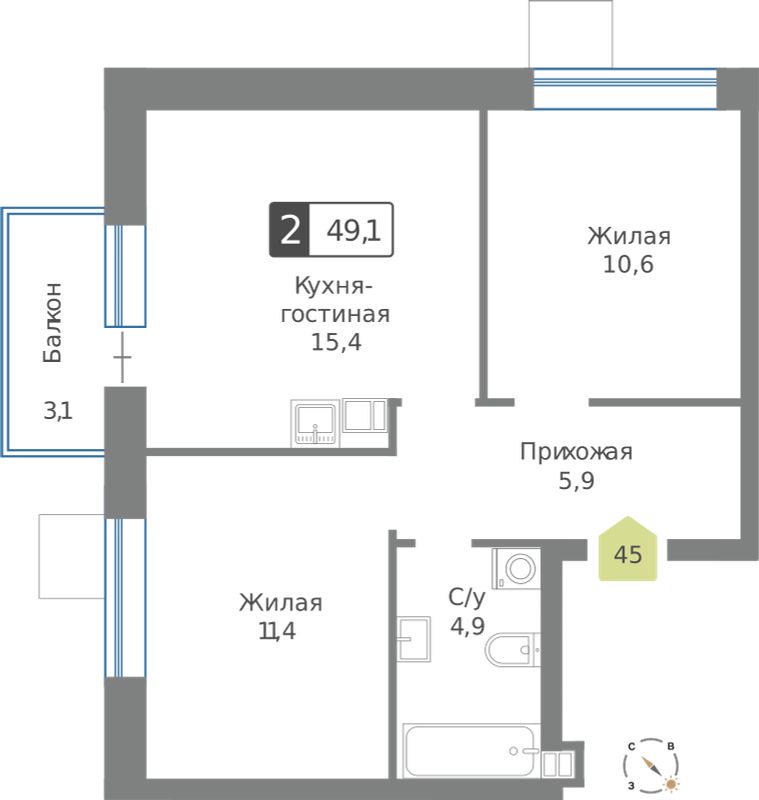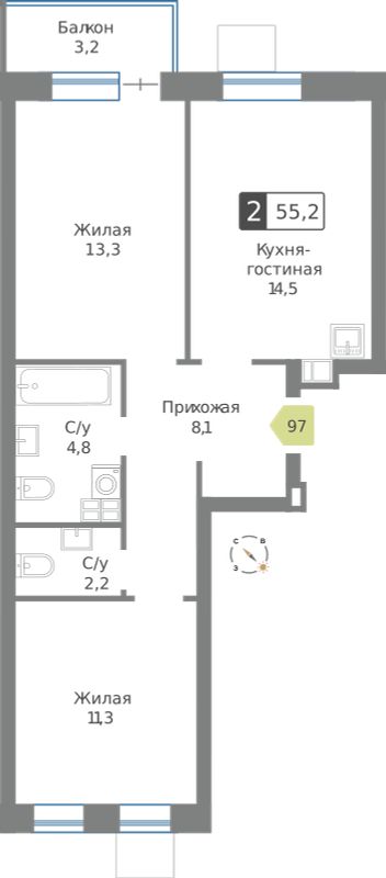 Двухкомнатные квартиры в ЖК Смарт Квартал Лесная Отрада
