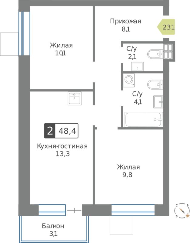 - Цена за м2 230 993 руб