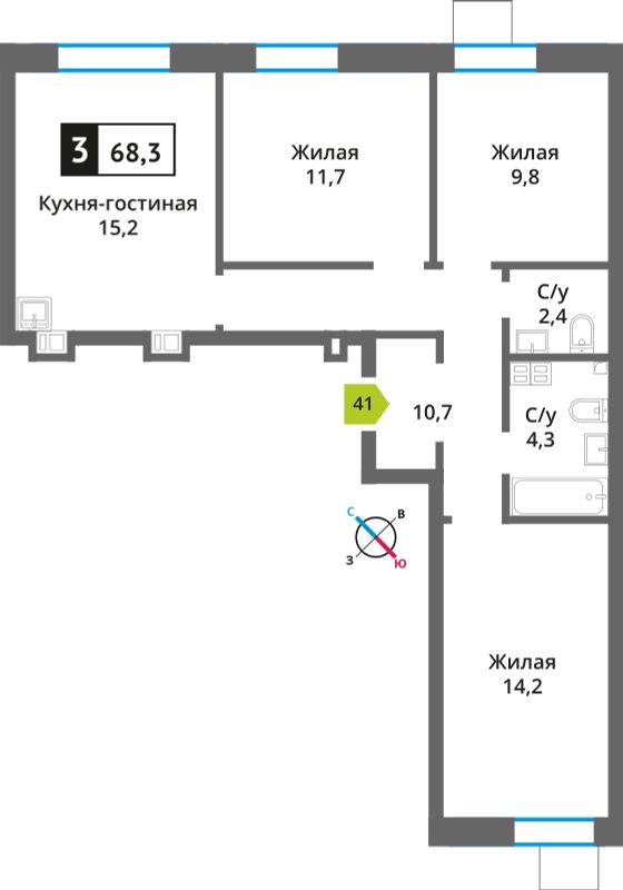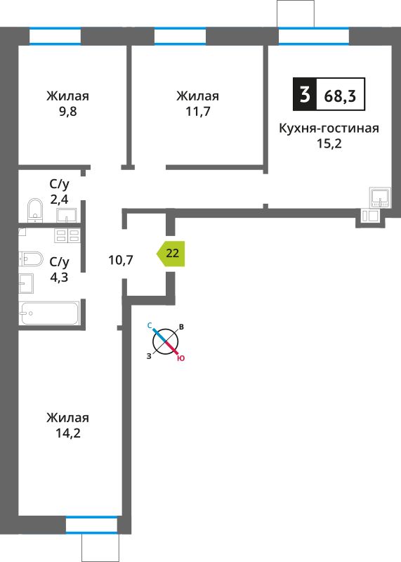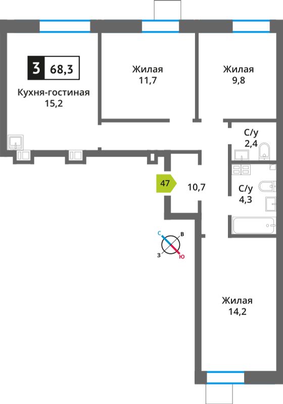 Трехкомнатные квартиры в ЖК Смарт Квартал Лесная Отрада