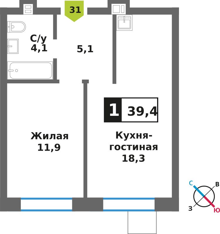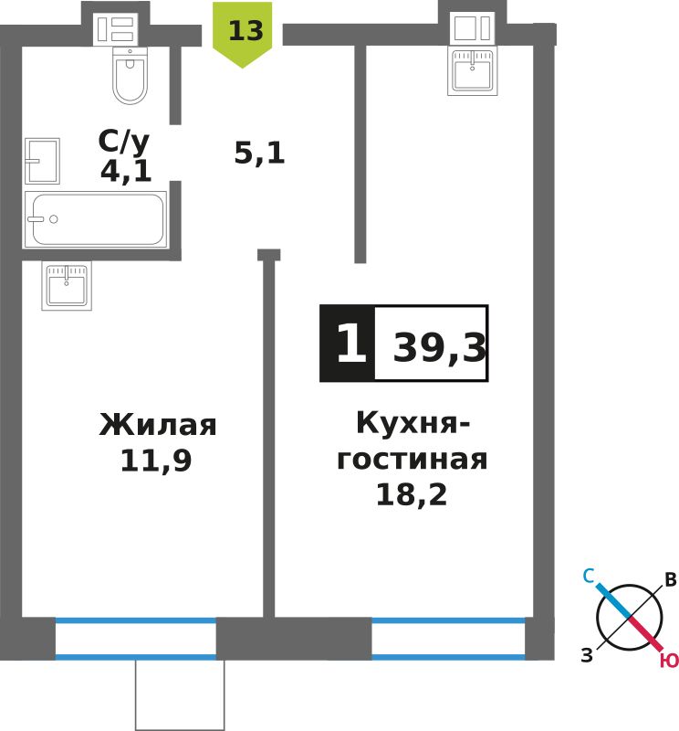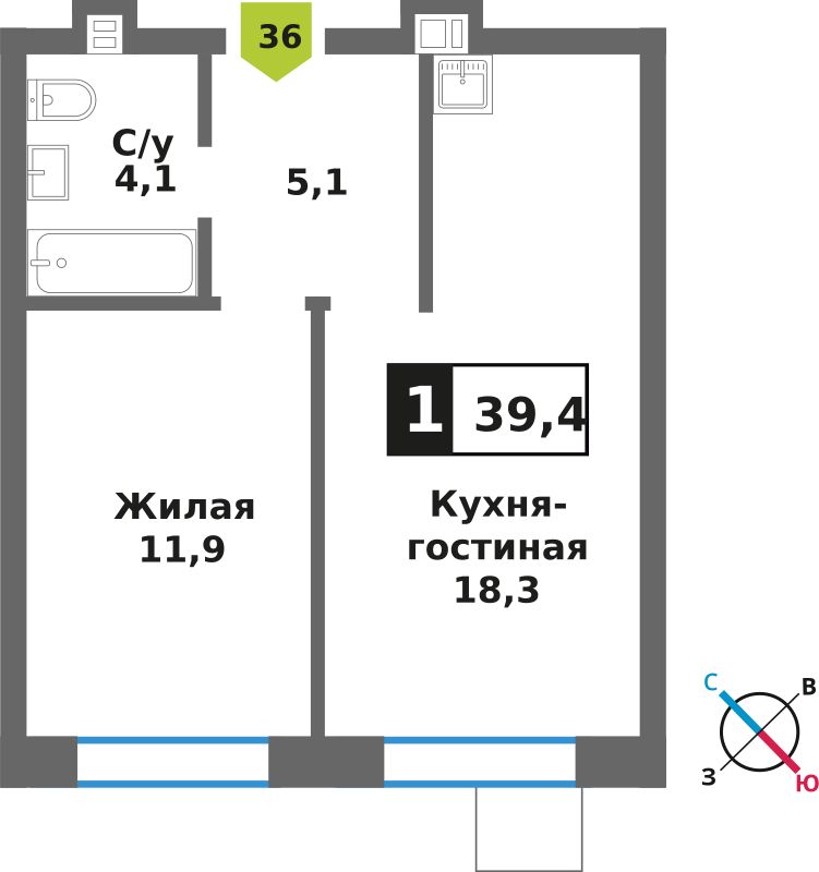 Евро однокомнатные квартиры в ЖК Смарт Квартал Лесная Отрада
