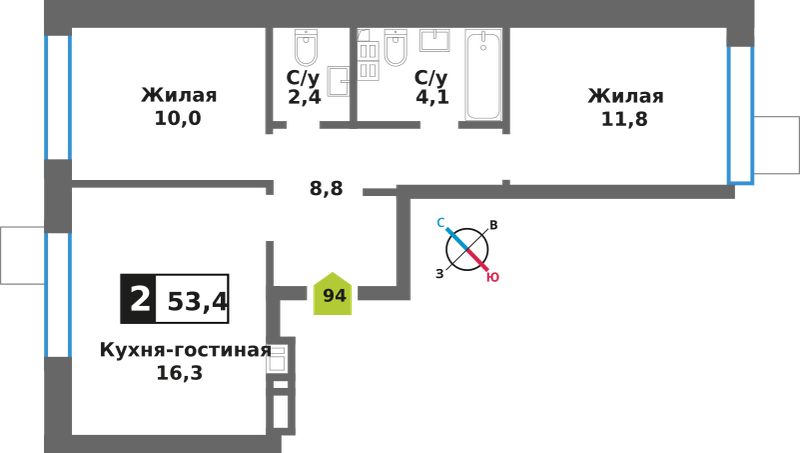 Евро двухкомнатные квартиры в ЖК Смарт Квартал Лесная Отрада