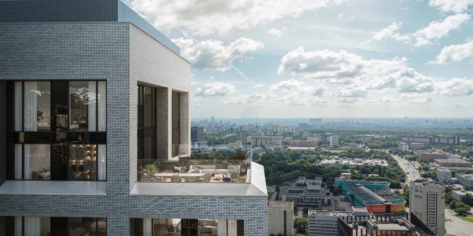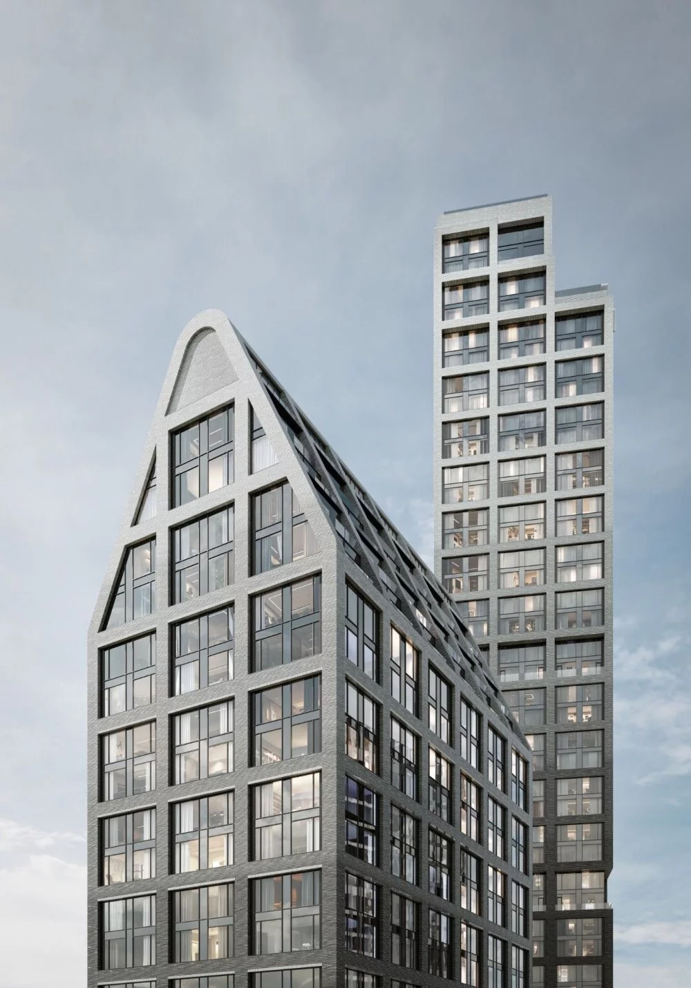 Проект отличает выверенная, лаконичная архитектура от бюро Kleinewelt Architekten. Башня А высотой в 45 этажей станет архитектурной доминантой с выразительными поясами балконов галерейного типа и эксклюзивными лотами со вторым светом. Камерная 20-этажная башня Б со скатной крышей, отсылающей к образам европейской архитектуры, будет включать двухуровневые квартиры с террасами.