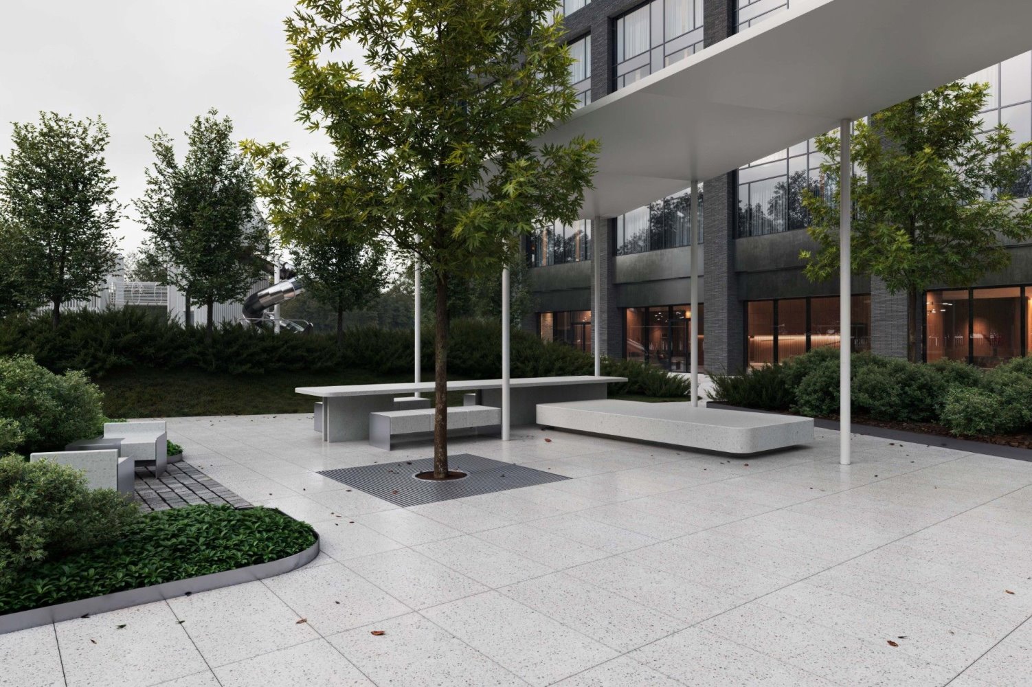 Закрытая благоустроенная территория комплекса будет включать игровые площадки для детей разных возрастов, workout-зону, павильоны для работы на открытом воздухе. Жители также смогут воспользоваться дополнительными зонами отдыха и инфраструктурой на территории, прилегающей к офисному кварталу класса А STONE Калужская.