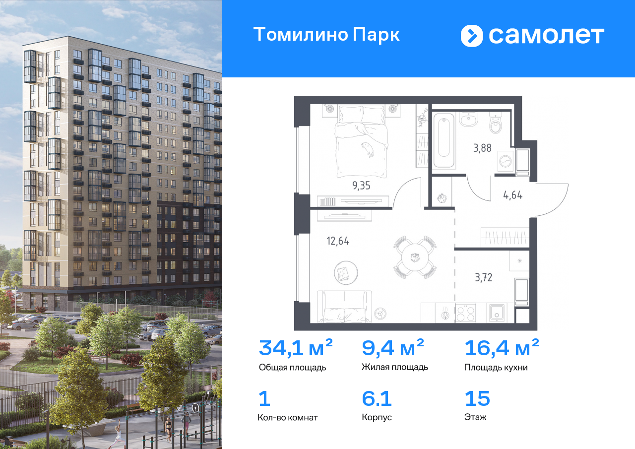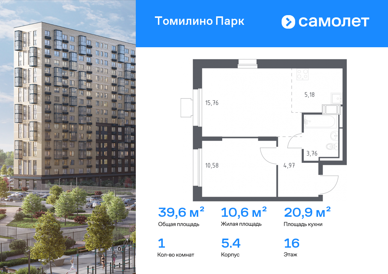 Евро однокомнатные квартиры в ЖК «Томилино Парк»