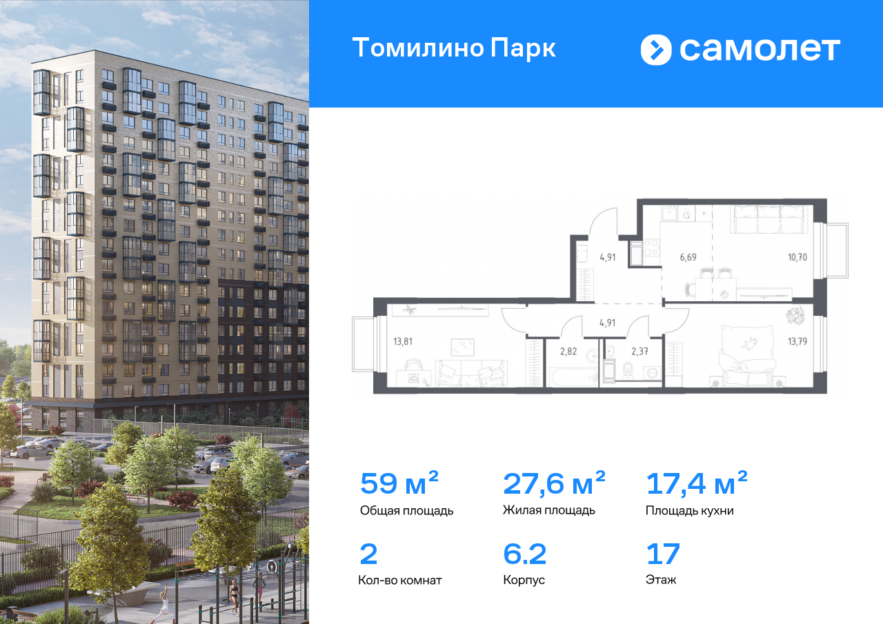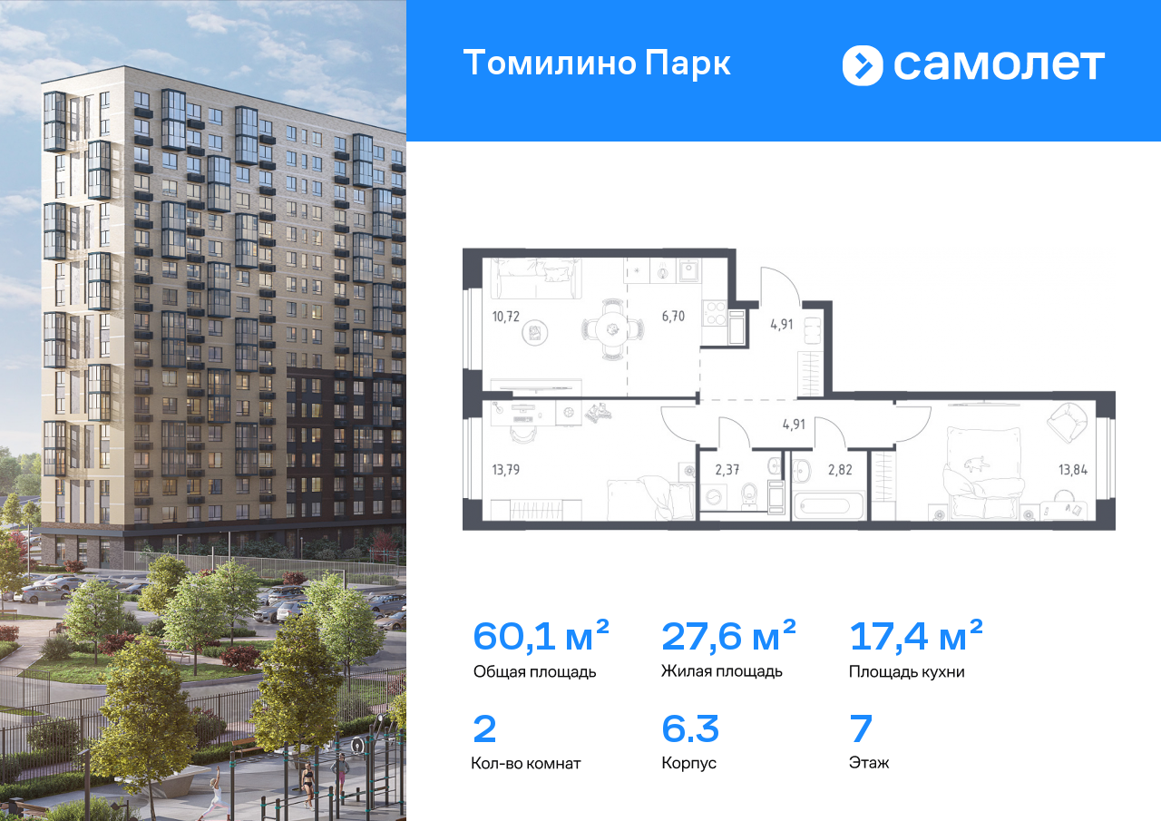 Евро двухкомнатные квартиры в ЖК «Томилино Парк»