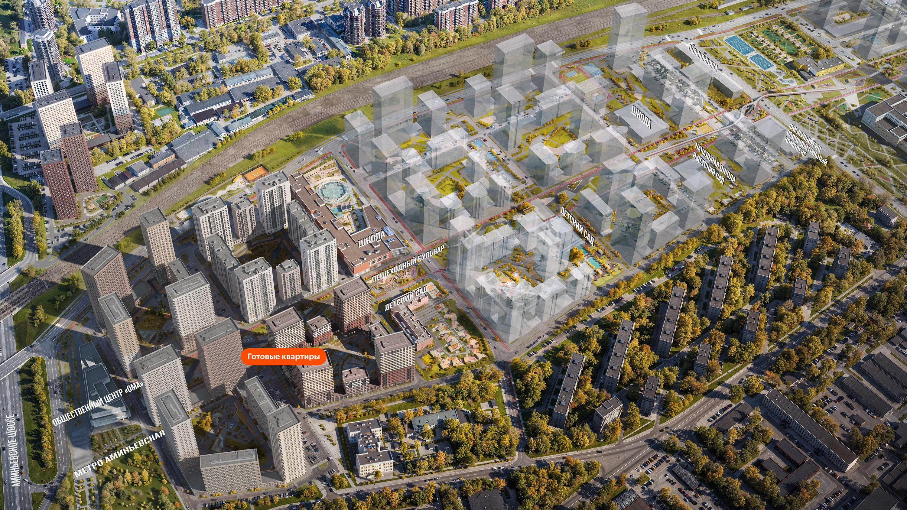 Помимо этого, на территории «Матвеевского кластера» начнут работу пять новых школ, шесть детских садов, и общественное пространство «ОМА» с магазинами, кафе, местами для спорта, встреч и общения.