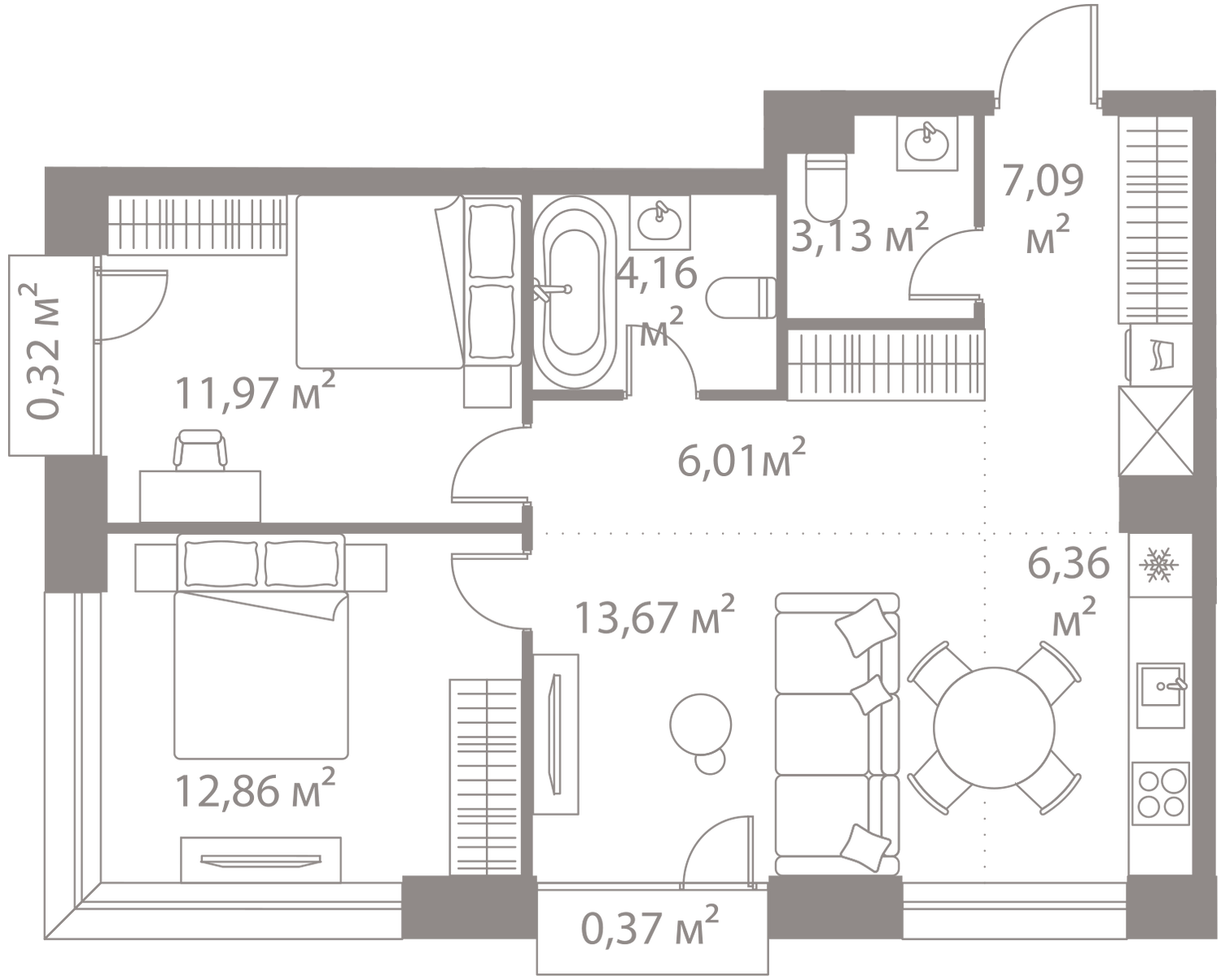 Концепция жилого квартала создана ведущими архитектурными бюро. Структуры малоэтажных кварталов дополняются высотными башнями-доминантами. Такой тип застройки позволил сформировать освещенную приватную территорию