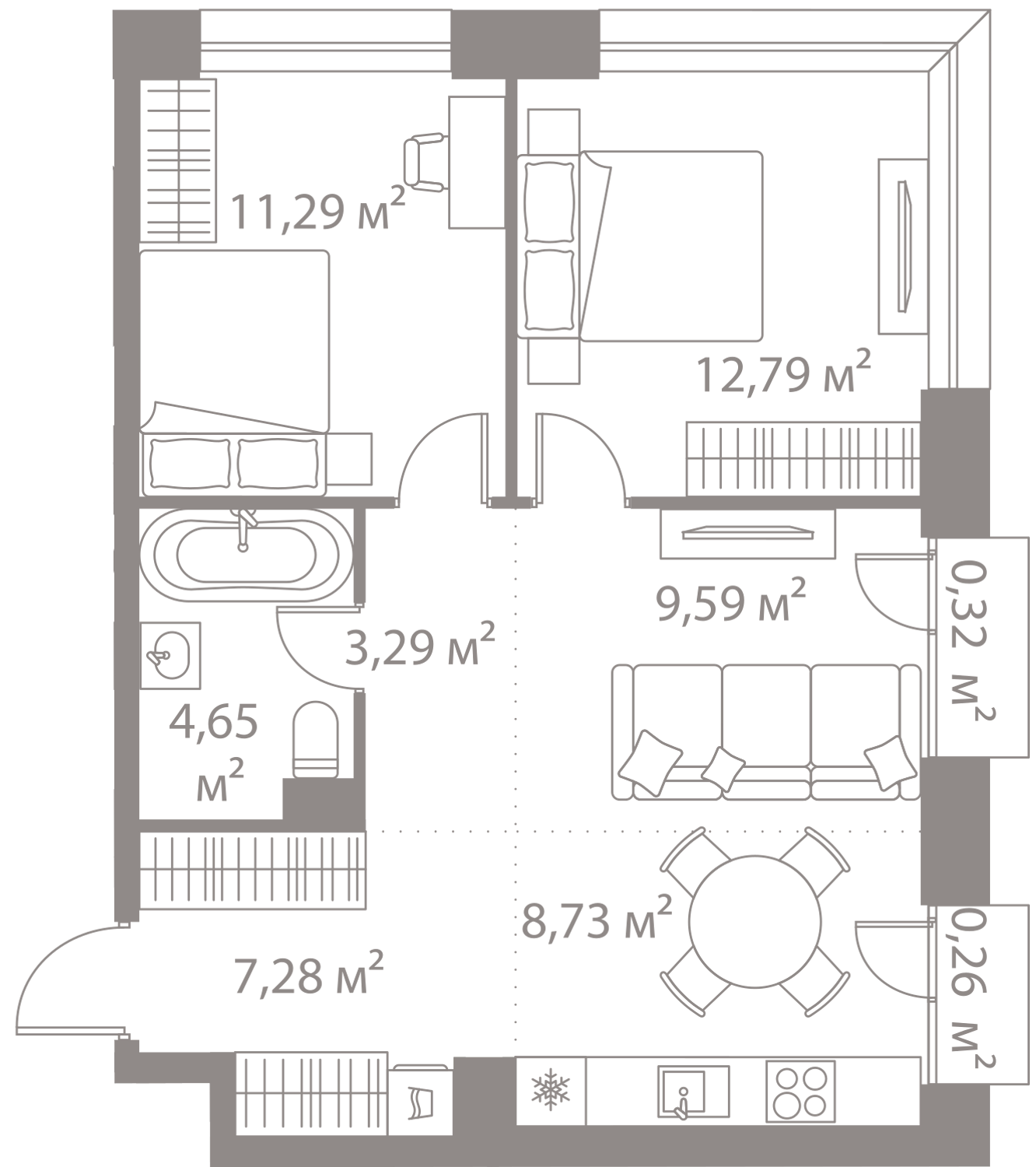 Внутренние дворы со сквозным проходом и общественные пространства соединяют воедино территорию, а богатая инфраструктура первых этажей делает жизнь в комплексе комфортной и разнообразной.