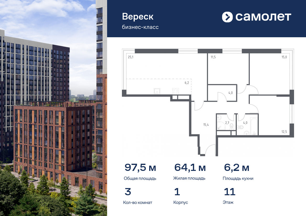 Трехкомнатные квартиры в ЖК «Вереск»