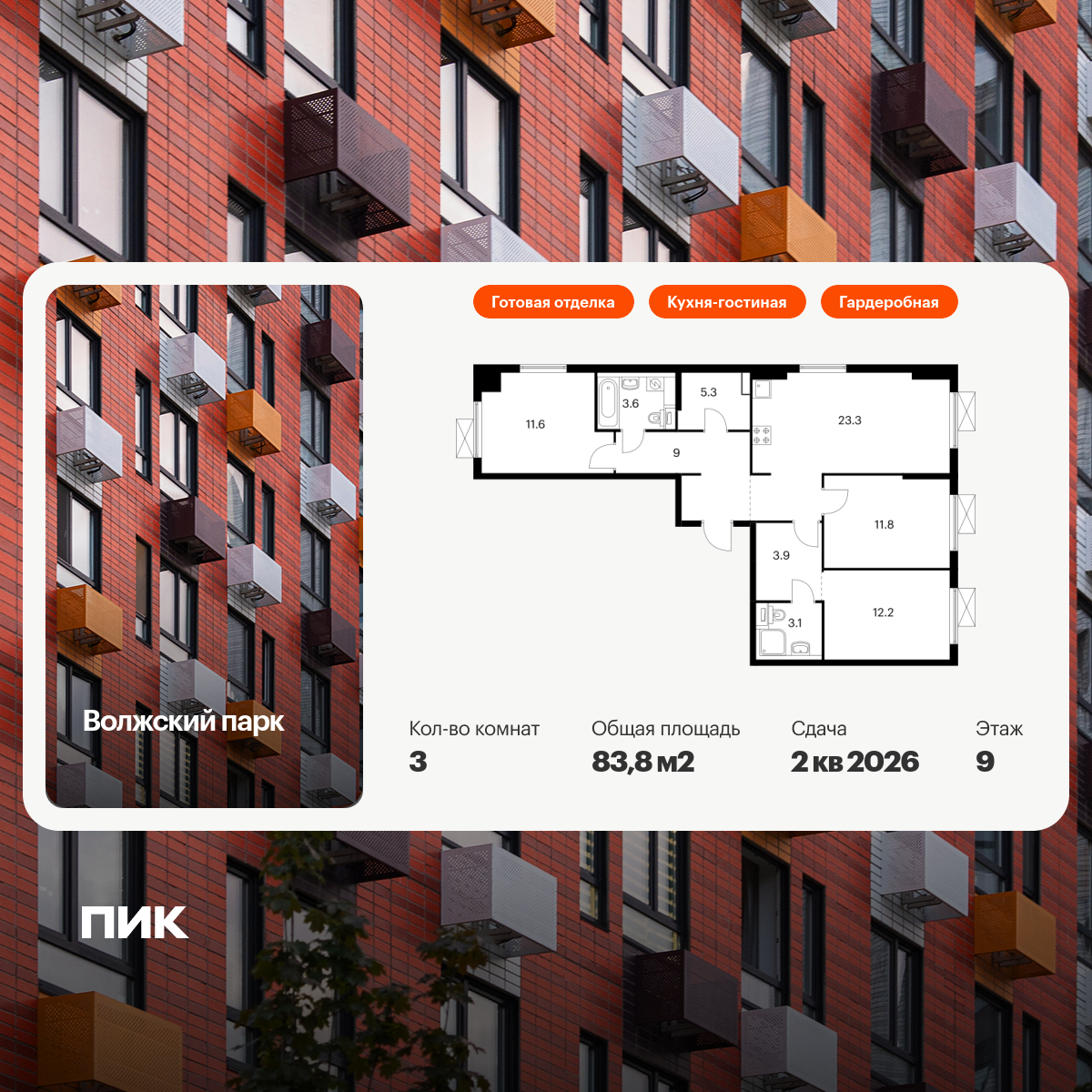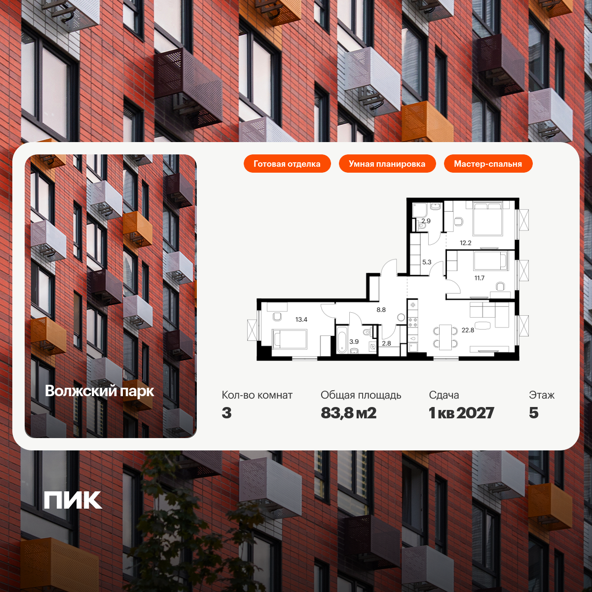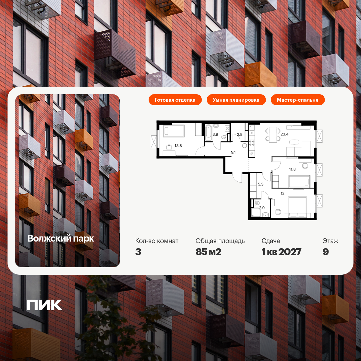 Трехкомнатные квартиры в Волжский парк