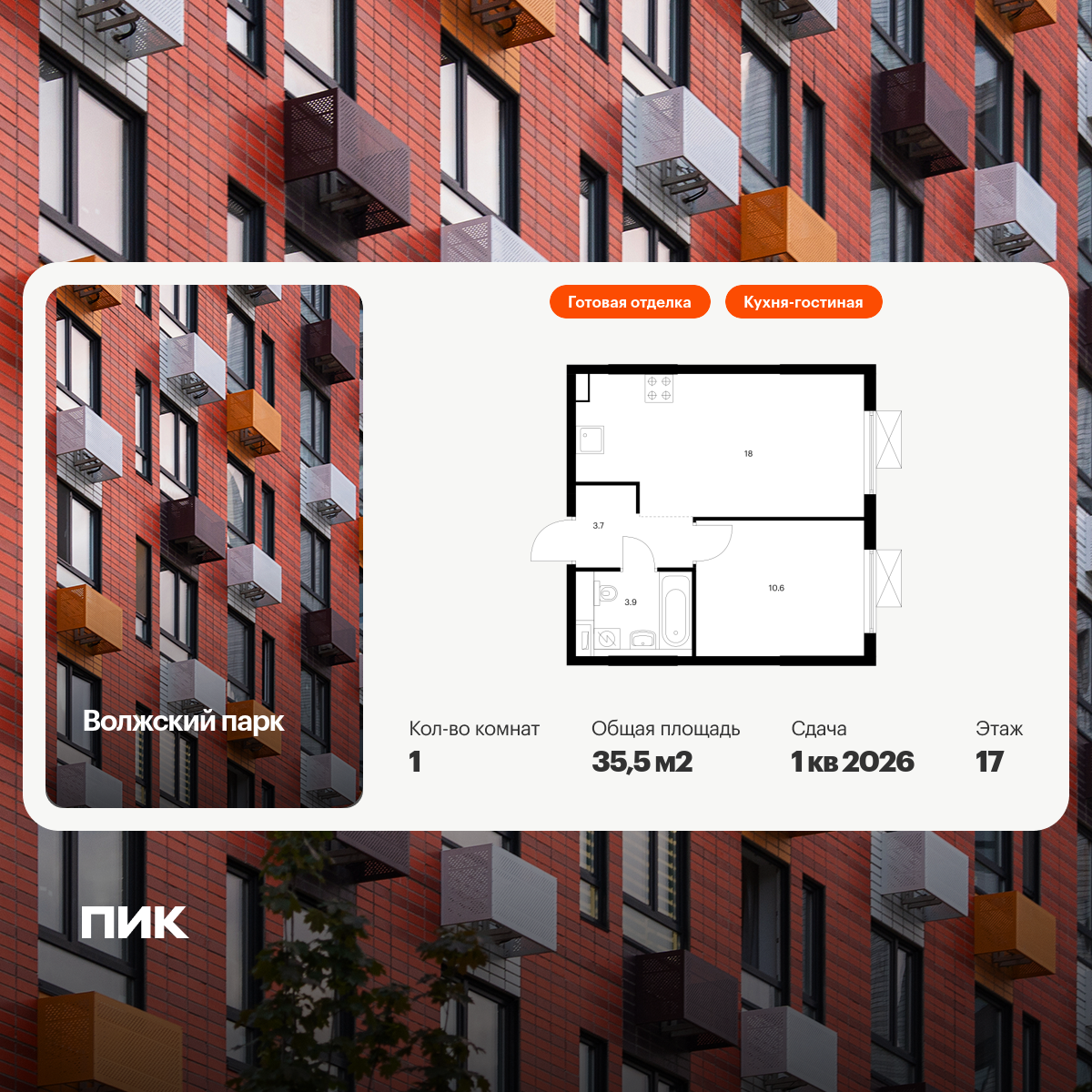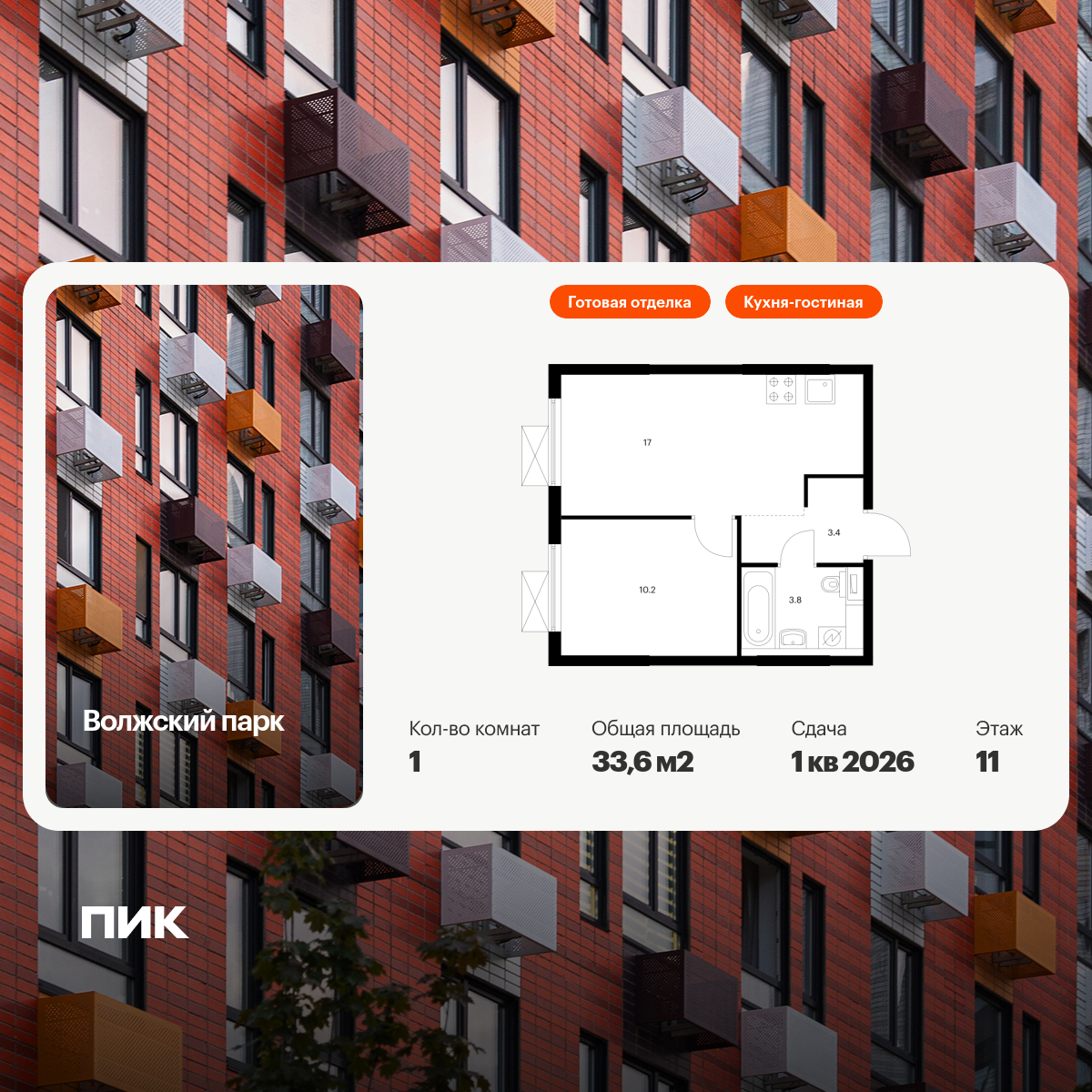 Евро однокомнатные квартиры в Волжский парк