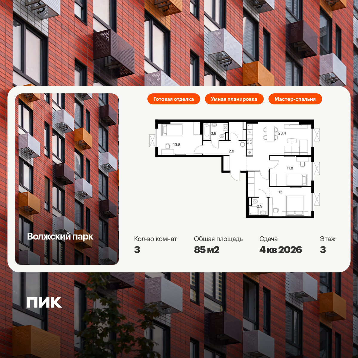 Евро трехкомнатные квартиры в Волжский парк