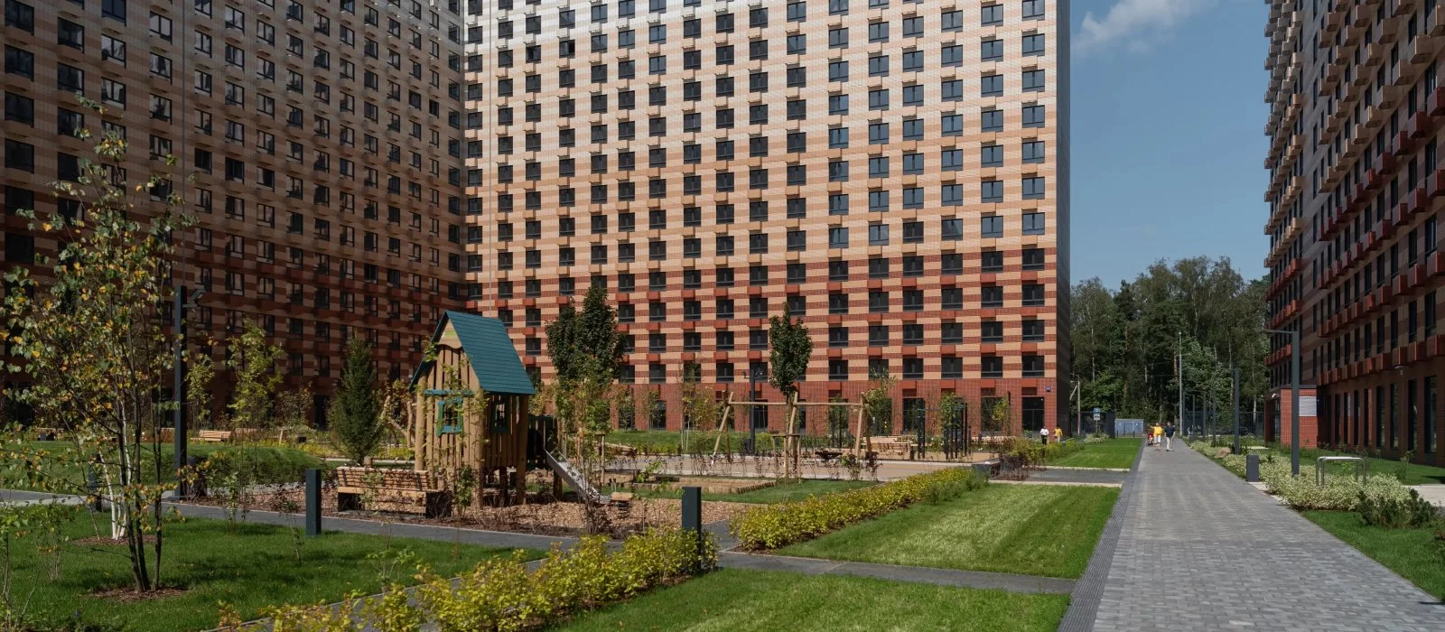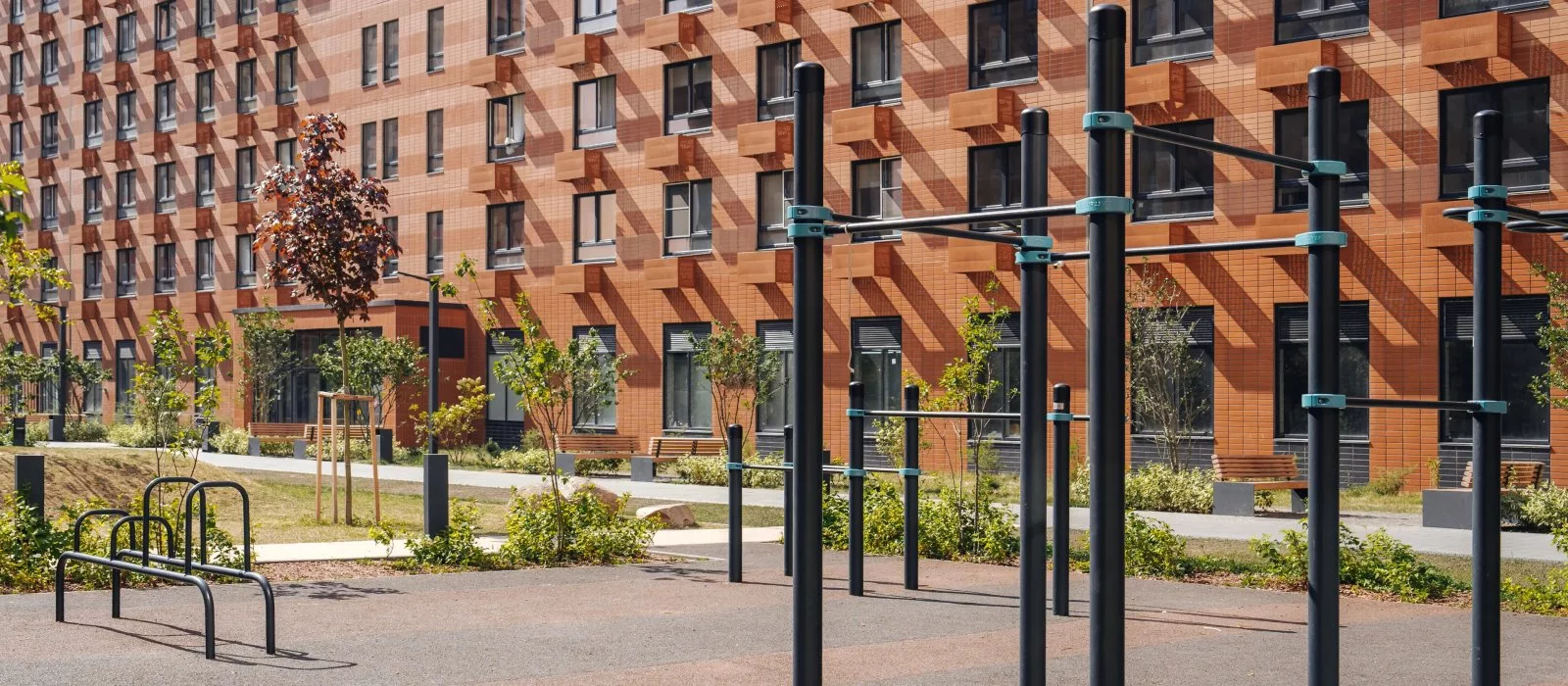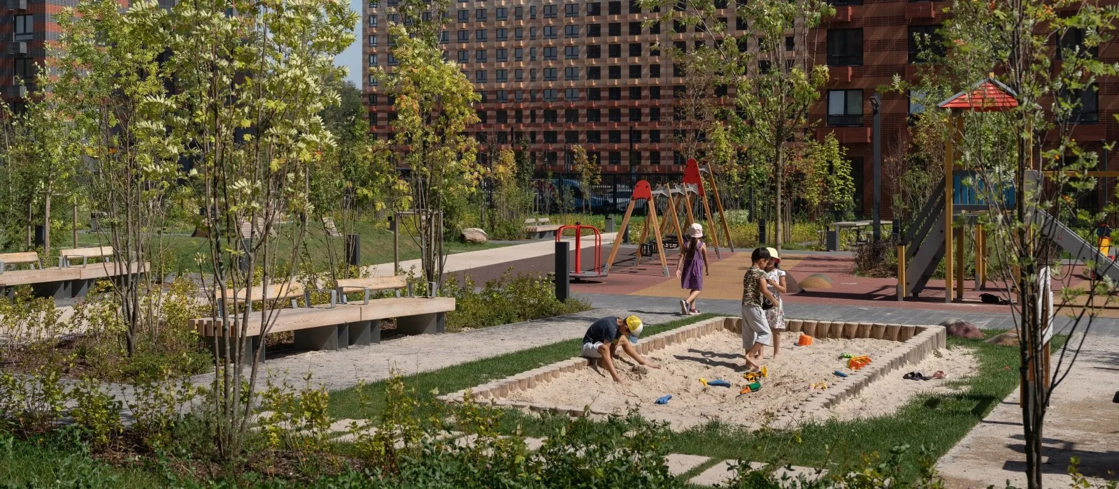Во дворах — зелёные парки с местами отдыха, детскими и спортивными площадками. На первых этажах домов работают магазины, кафе и полезные сервисы. А для владельцев автомобилей предусмотрены многоуровневый и подземный паркинги.