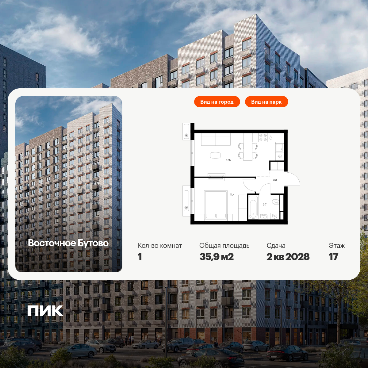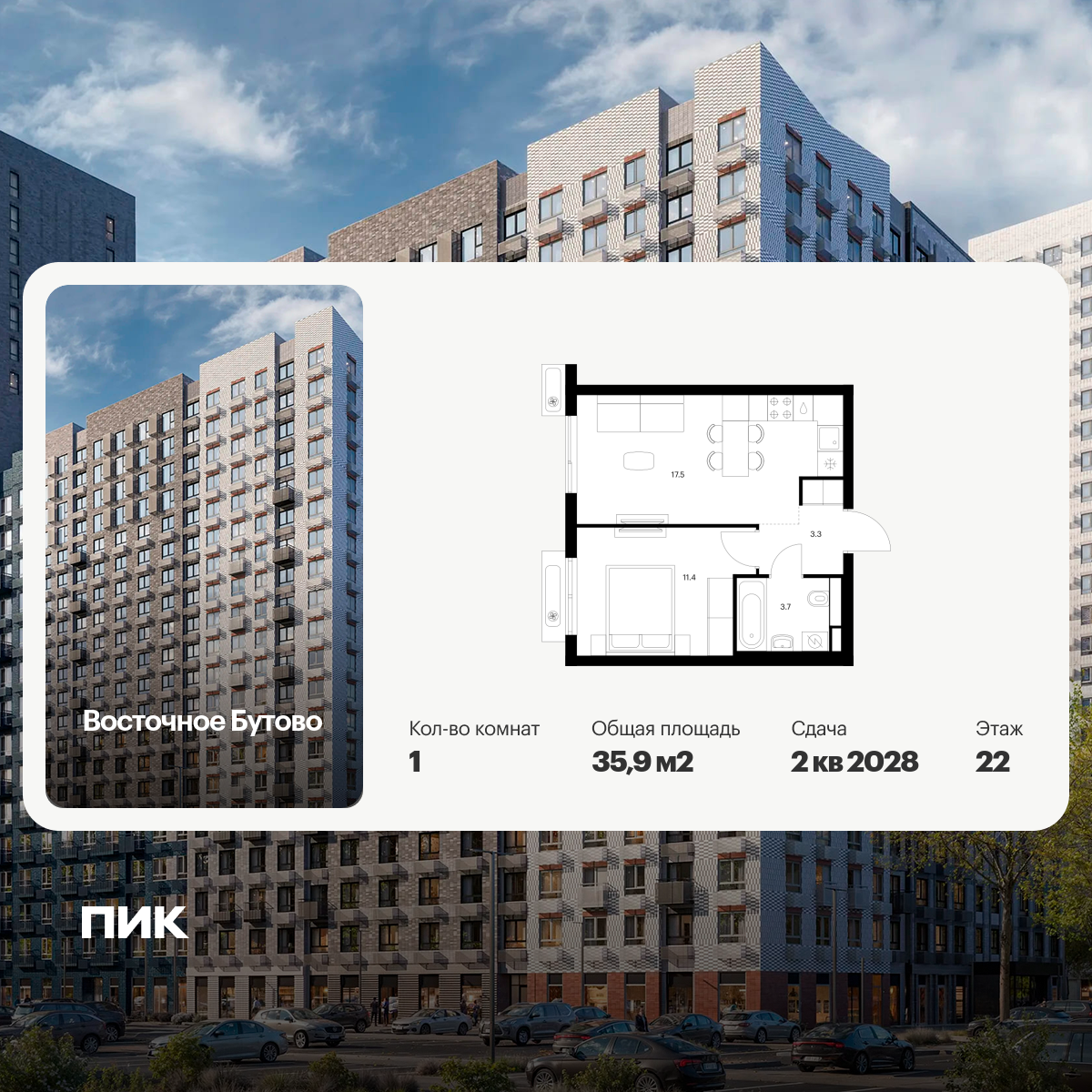 «Восточное Бутово» — квартал ПИК с готовой инфраструктурой в зелёном районе Московской области, по соседству с Бутовским лесопарком. Дорога до станций метро и МЦД «Бульвар Дмитрия Донского» займёт 20 минут на автомобиле. Доехать до МКАД можно всего за 10 минут.
