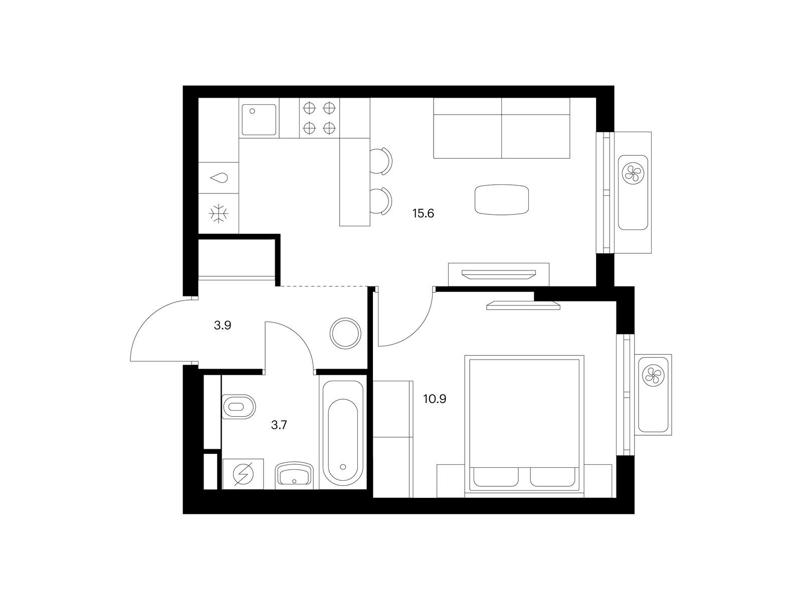 В квартале вы найдёте и уникальные форматы квартир. Для ценителей простора и обилия солнечного света есть планировки с окнами в пол, балконами и террасами.