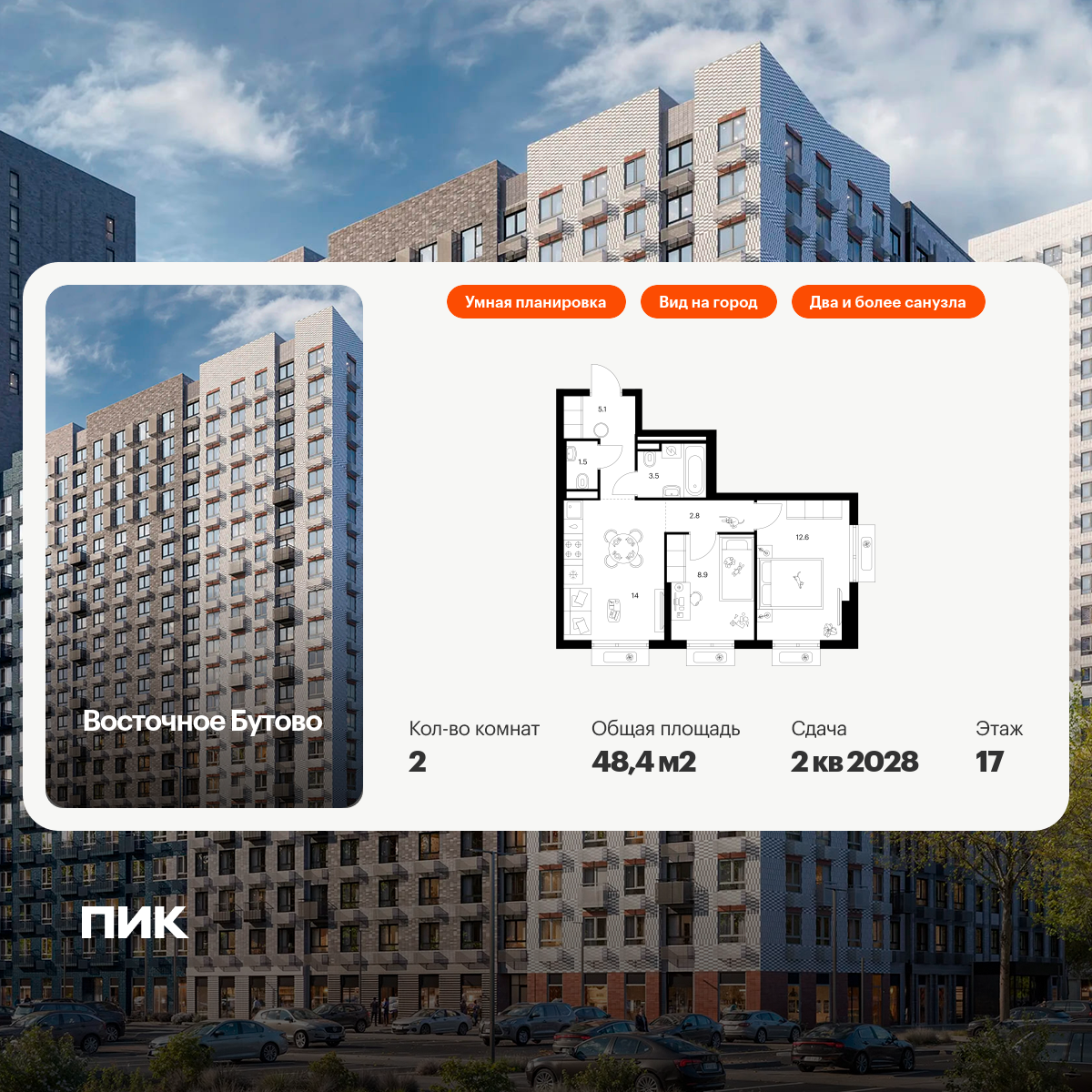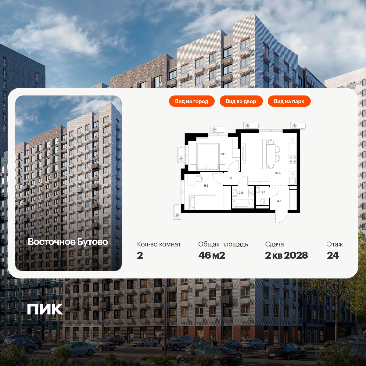 «Восточное Бутово» — квартал ПИК с готовой инфраструктурой в зелёном районе Московской области, по соседству с Бутовским лесопарком. Дорога до станций метро и МЦД «Бульвар Дмитрия Донского» займёт 20 минут на автомобиле. Доехать до МКАД можно всего за 10 минут.
