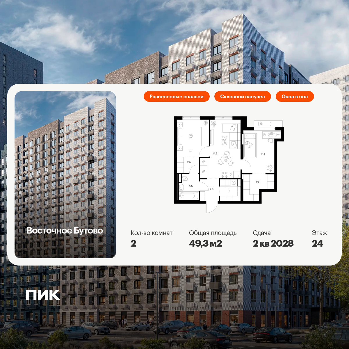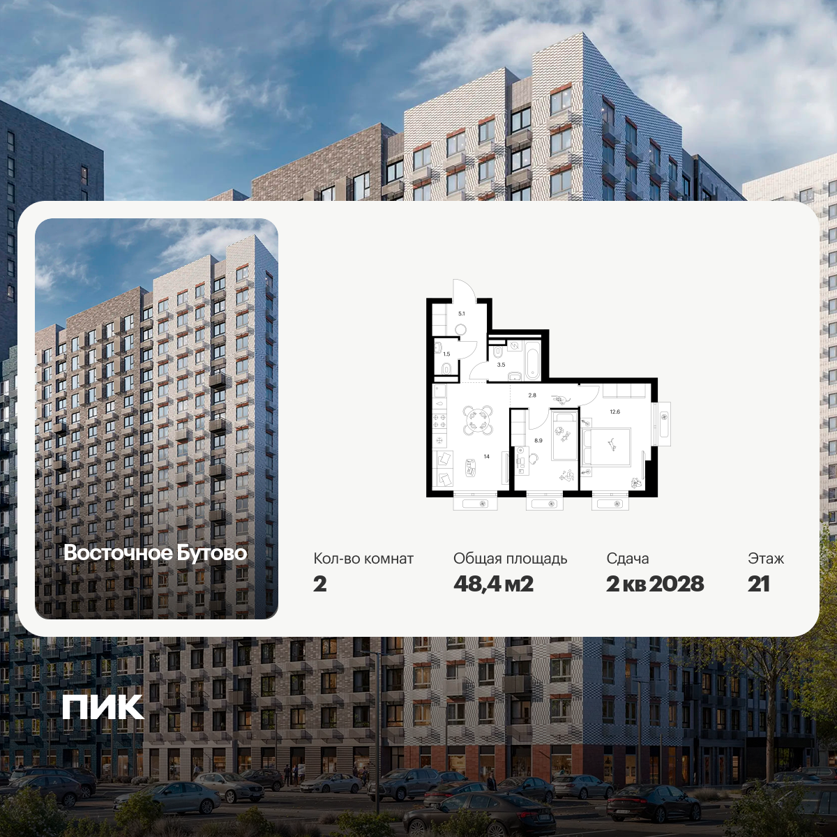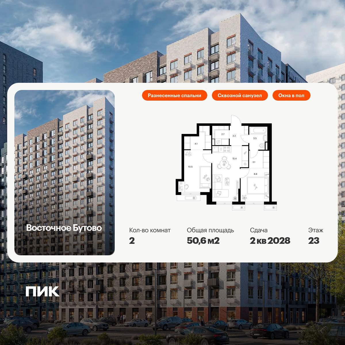 Двухкомнатные квартиры в Восточное Бутово