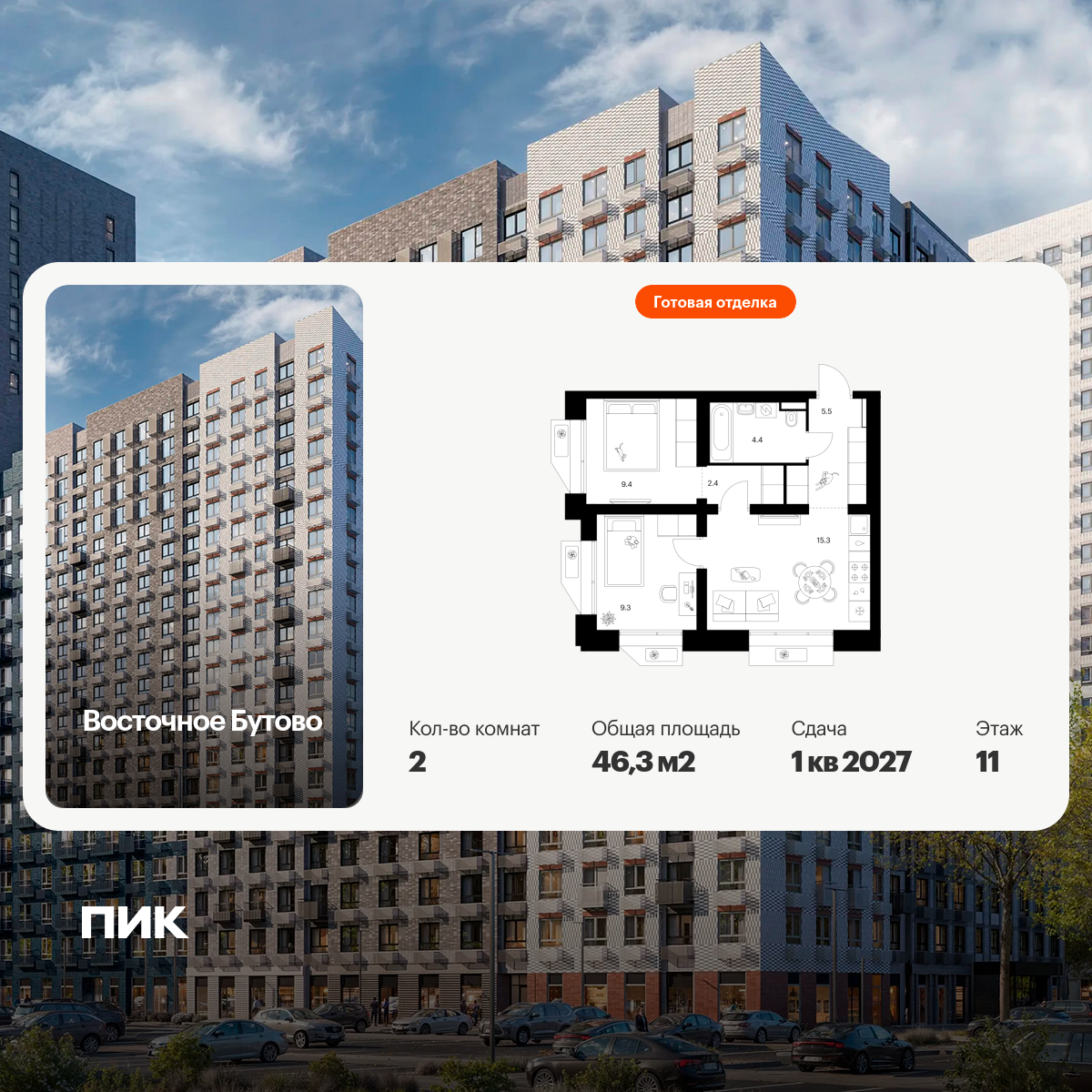 «Восточное Бутово» — квартал ПИК с готовой инфраструктурой в зелёном районе Московской области, по соседству с Бутовским лесопарком. Дорога до станций метро и МЦД «Бульвар Дмитрия Донского» займёт 20 минут на автомобиле. Доехать до МКАД можно всего за 10 минут.