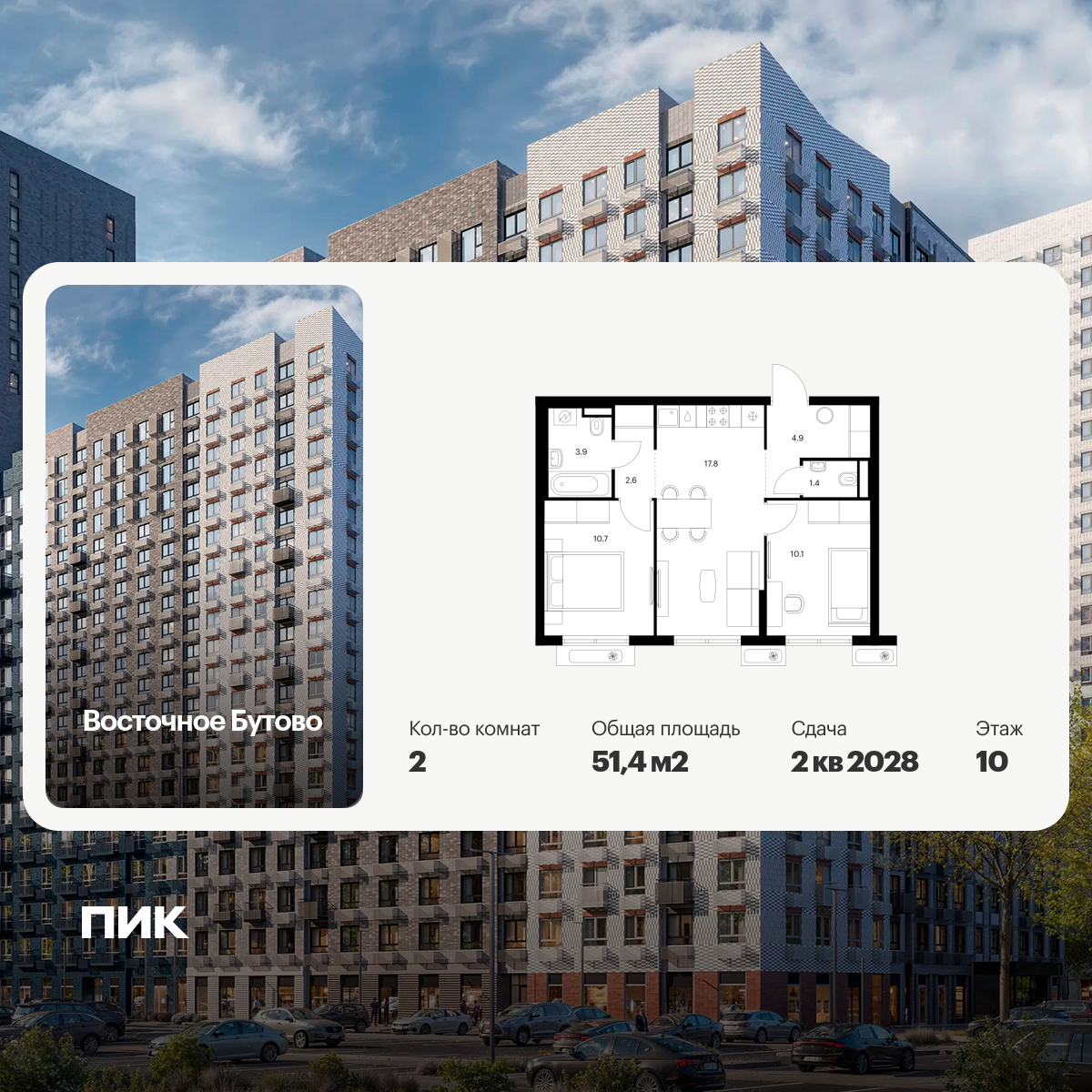 Двухкомнатные квартиры в Восточное Бутово