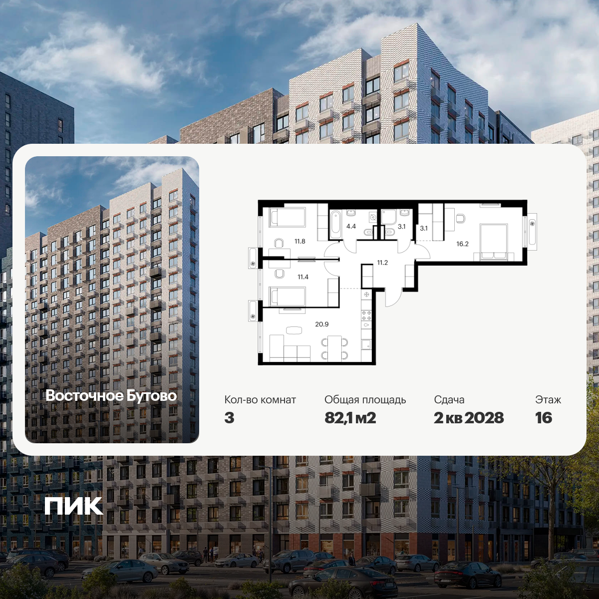 Трехкомнатные квартиры в Восточное Бутово