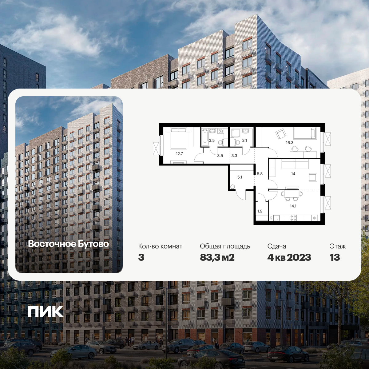 Трехкомнатные квартиры в Восточное Бутово